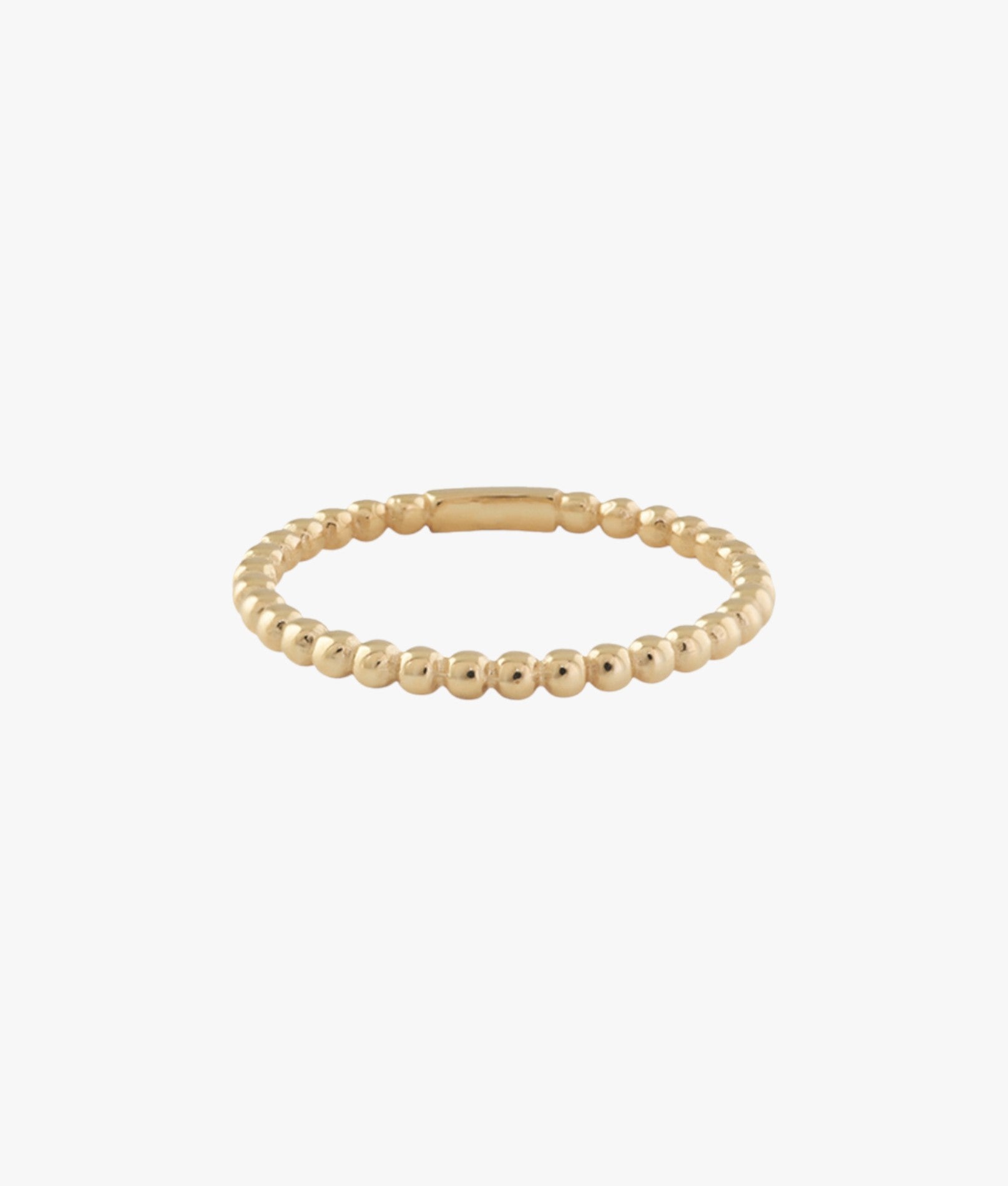 Simple texture, timeless shine. This yellow gold plated ring features a fine beaded band, bringing a subtle touch of detail to any stack. It pairs effortlessly with both statement and minimalist pieces.