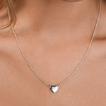 Soft curves, minimal design. This cable chain necklace features a round heart pendant fixed in place for clean, streamlined wear. An elegant expression of form and sentiment.