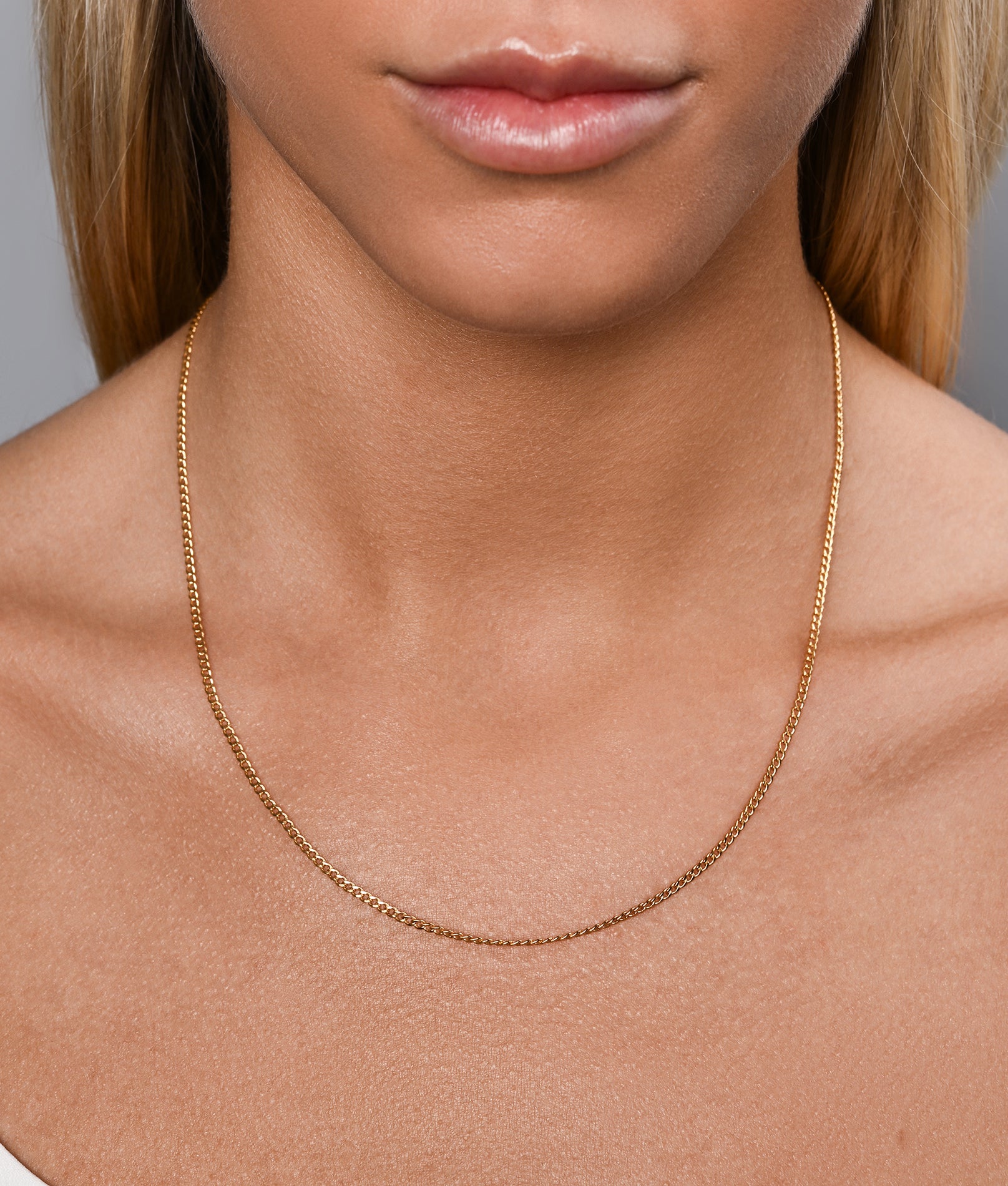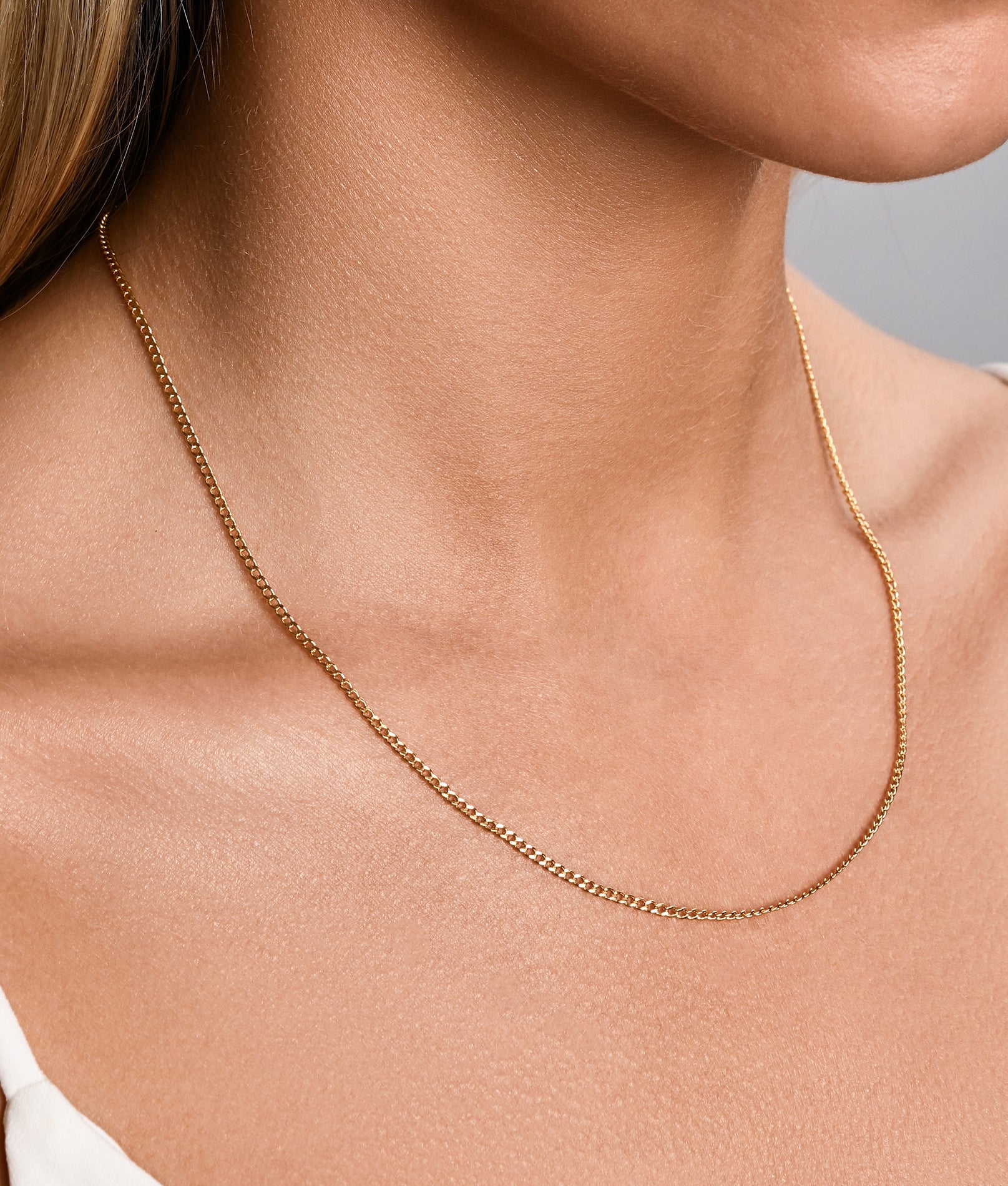 Classic with a modern edge. This gold filled curb chain necklace features tightly linked curves that create a smooth, fluid finish. A refined essential that adds shine and substance to any look.