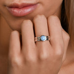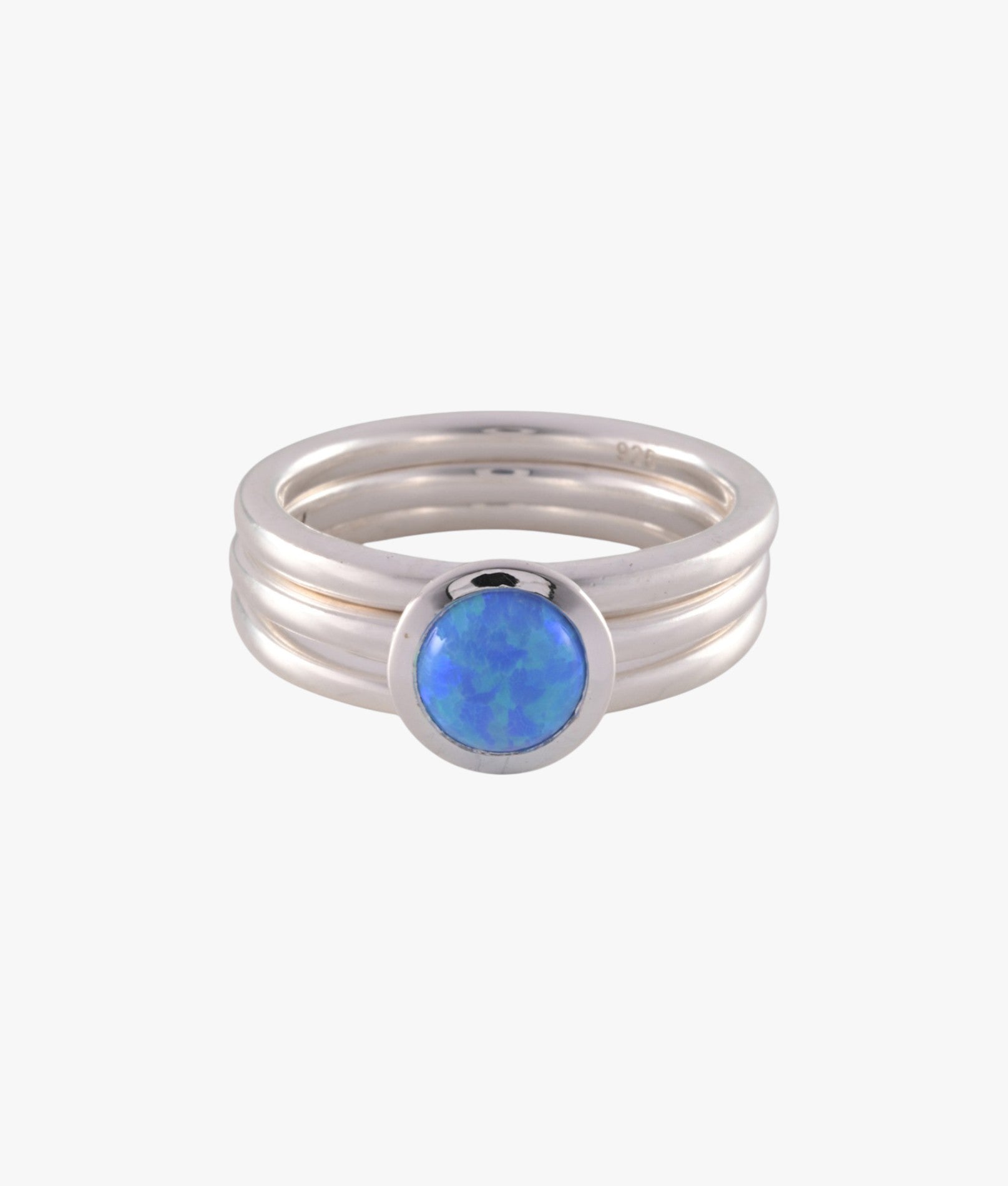 Three’s a party. This automatic ring stack set is finished with Von Treskow’s signature blue Czelline opal, catching the light with flashes of iridescent colour. Wear the trio together for impact, or split them up and mix into your daily stack.