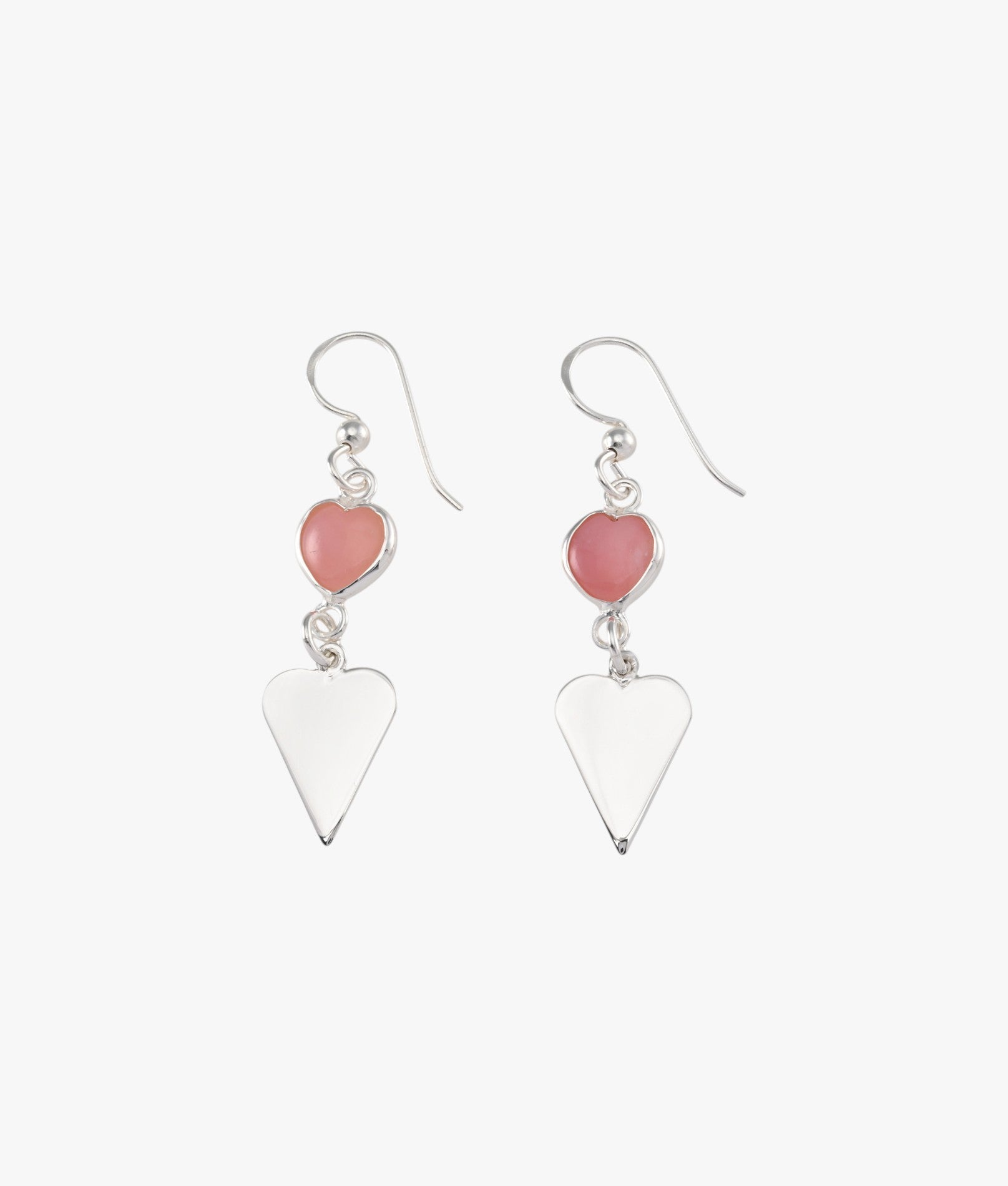 A touch of romance. These sterling silver hook earrings feature natural mini heart-shaped Pink Opals paired with polished Von Treskow hearts. The soft blush tones of opal bring warmth and femininity, balanced by the playful heart design.