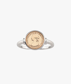 Clean lines, soft contrast. These hinged hoops feature Von Treskow’s gold Micro coin tokens, bezel-set for a refined two-tone finish. A subtle mix of texture and shine.