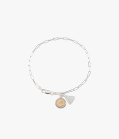 A soft blend of silver and gold. This fine box chain necklace features Von Treskow’s gold Micro coin token, bezel-set for a polished two-tone finish. Subtle contrast, signature detail.