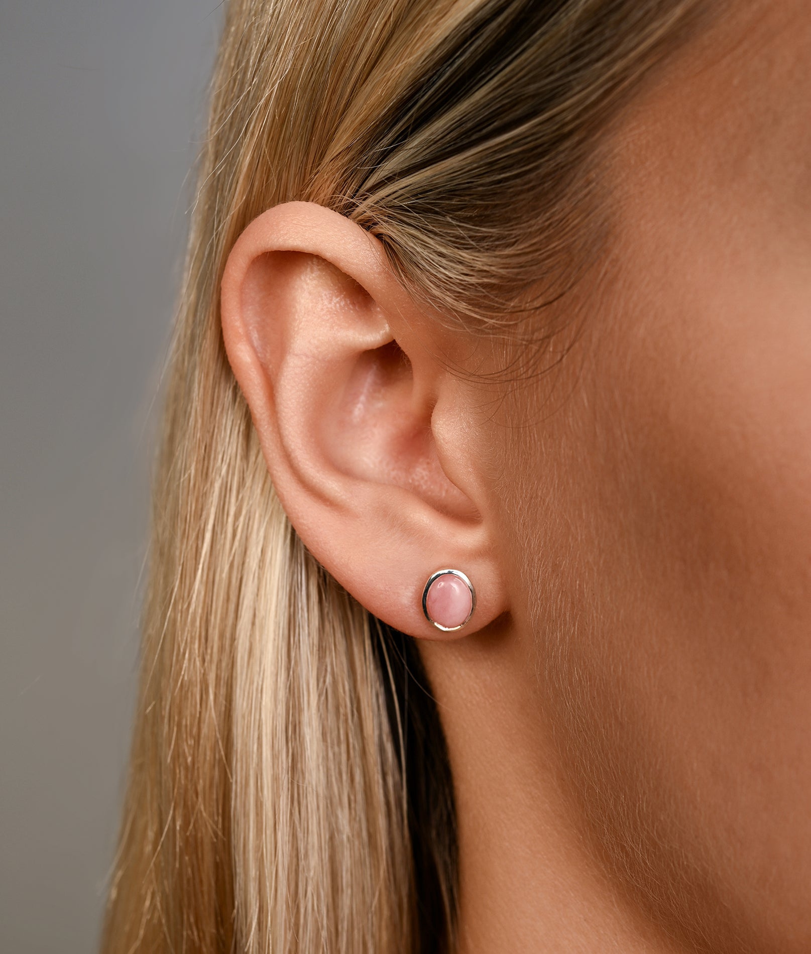 Subtle blush, effortless shine. Oval Pink Opal studs that bring a touch of natural warmth to your everyday look - minimal, soft, and endlessly wearable.