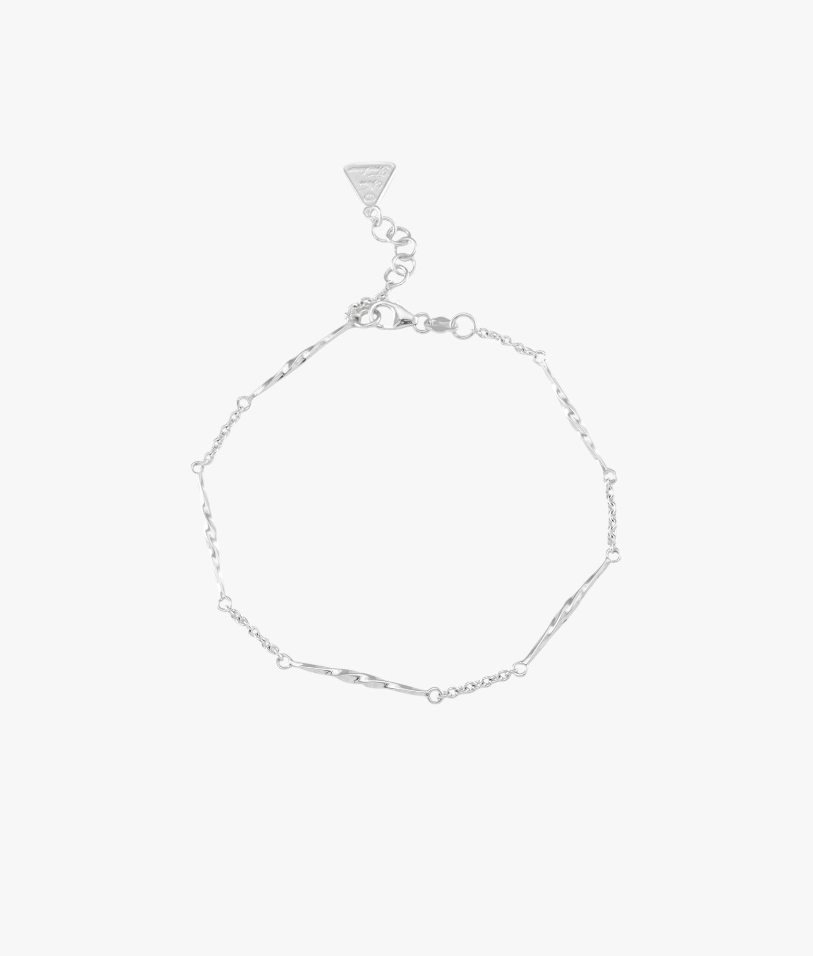 Clean lines, subtle movement. This bracelet features a segmented twist design that catches the light with every angle. Sleek, sculptural, and refined in its simplicity.