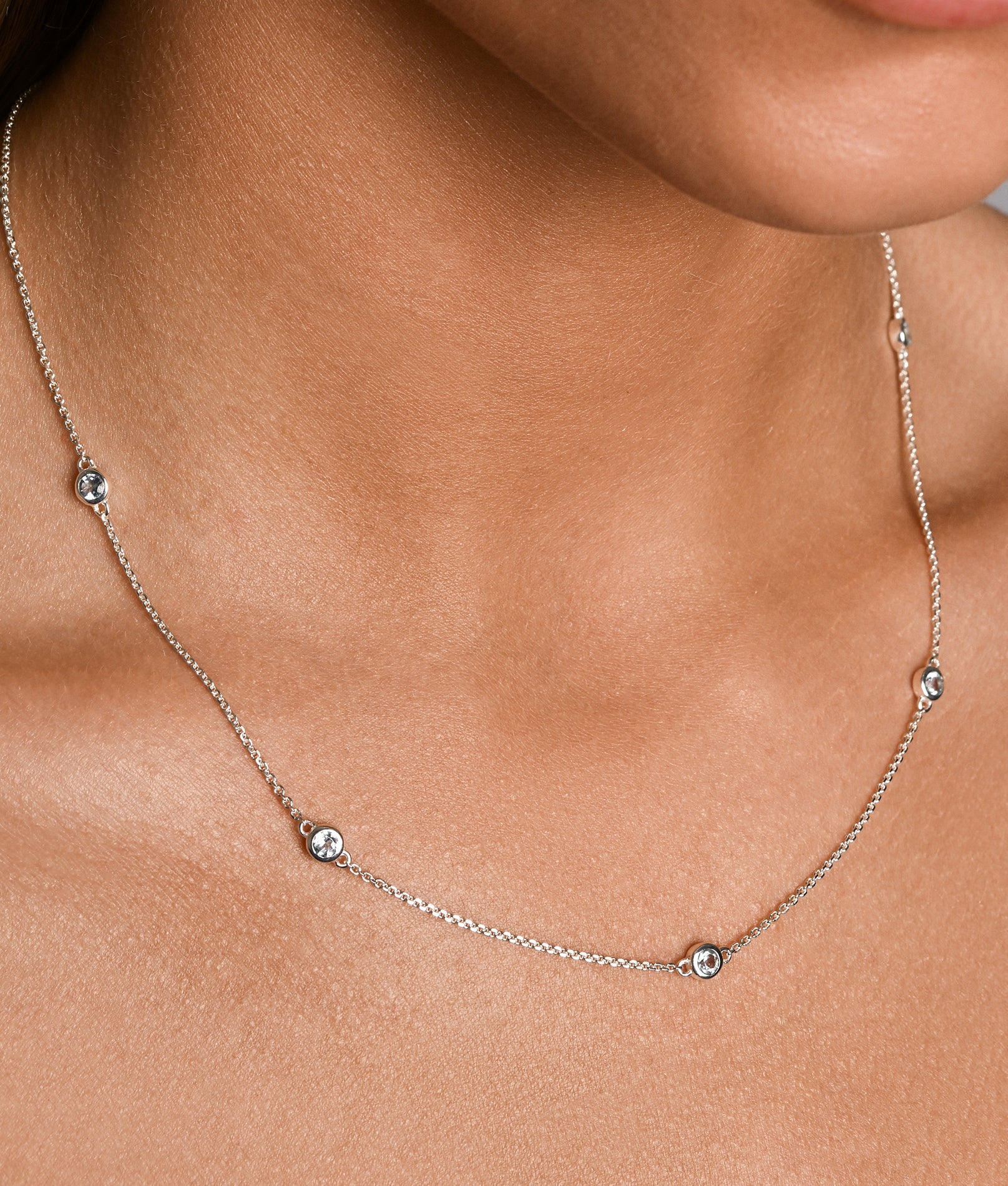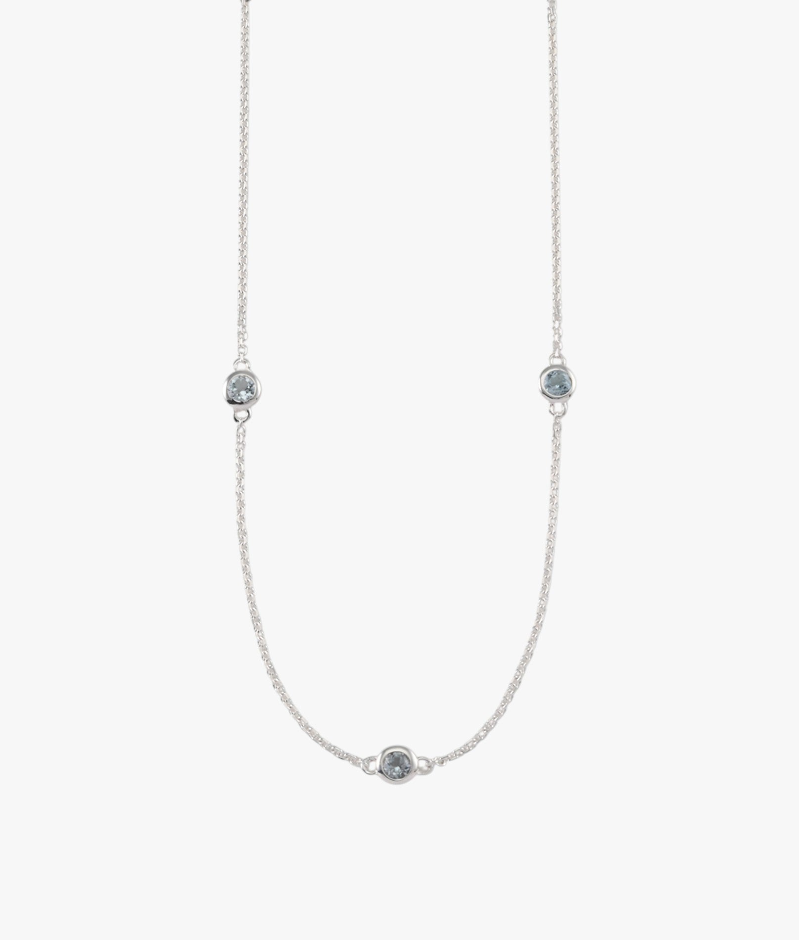 Soft shimmer, subtle statement. From Von Treskow’s Lime & Berry collection, this fine chain necklace features three round-cut Sky Blue Topaz stones. Their light, luminous tones catch the eye with delicate radiance, adding an effortless layer of colour to your everyday look.