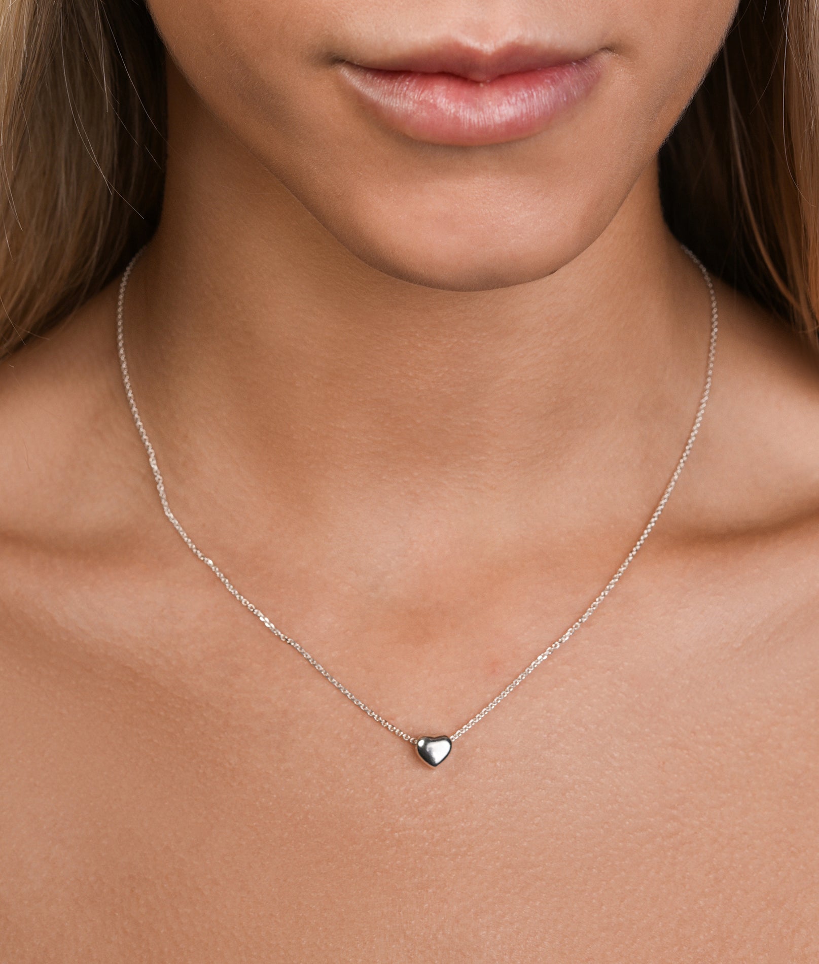 Curved softness meets gentle motion. This cable chain necklace features a polished bubble-heart pendant that slides freely along the chain for subtle movement and charm.