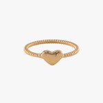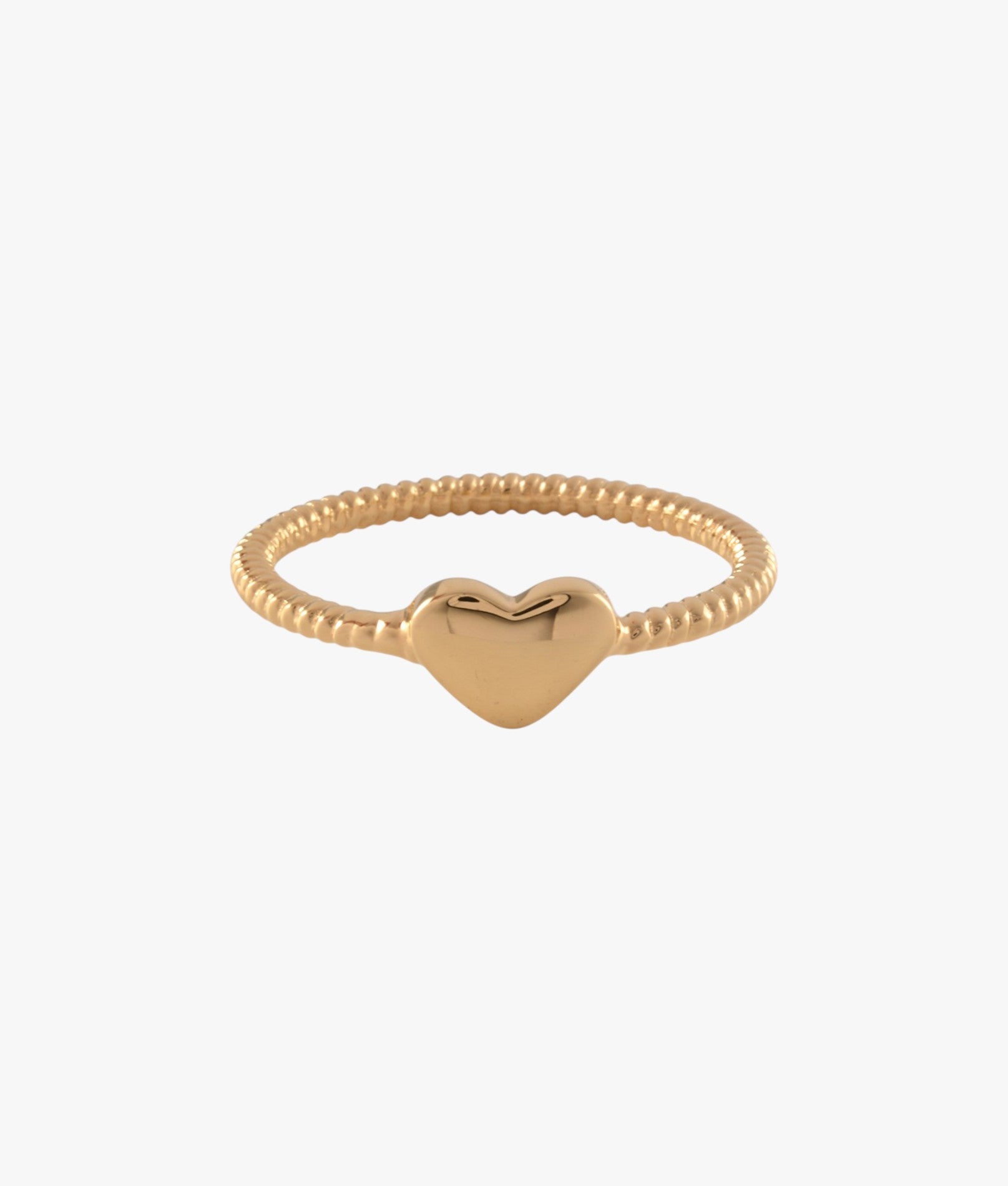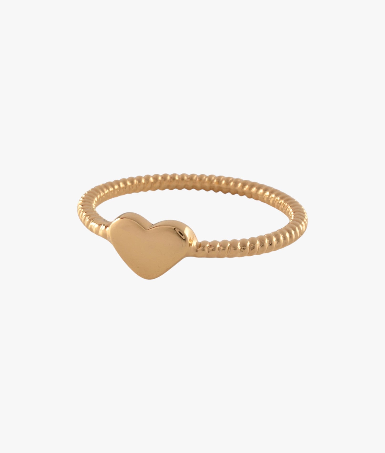 Soft detail, subtle sentiment. This gold plated ring features a fine ribbed band accented by a polished mini heart. Combining gentle texture with timeless simplicity, it’s a refined piece that adds a touch of warmth to any collection.