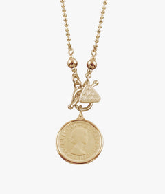 Materials: Yellow gold plated coin, yellow gold-filled beads