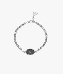 This oval cabochon ring features blue topaz floating in a sea of black onyx.