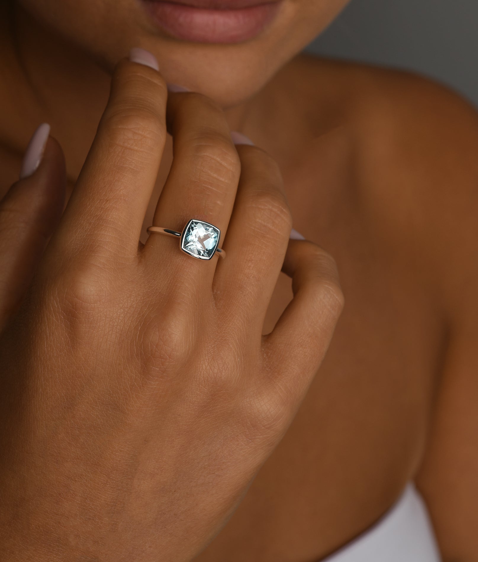 Fine square blue topaz ring