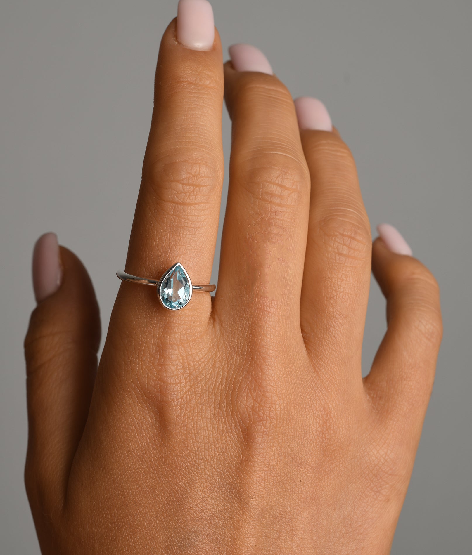 Pear shaped blue topaz ring (cased)