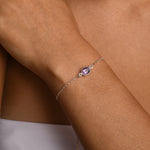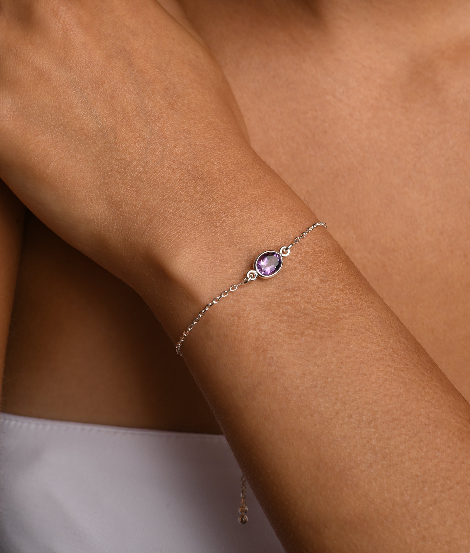 Adjustable link chain bracelet with double hooked oval amethyst.
