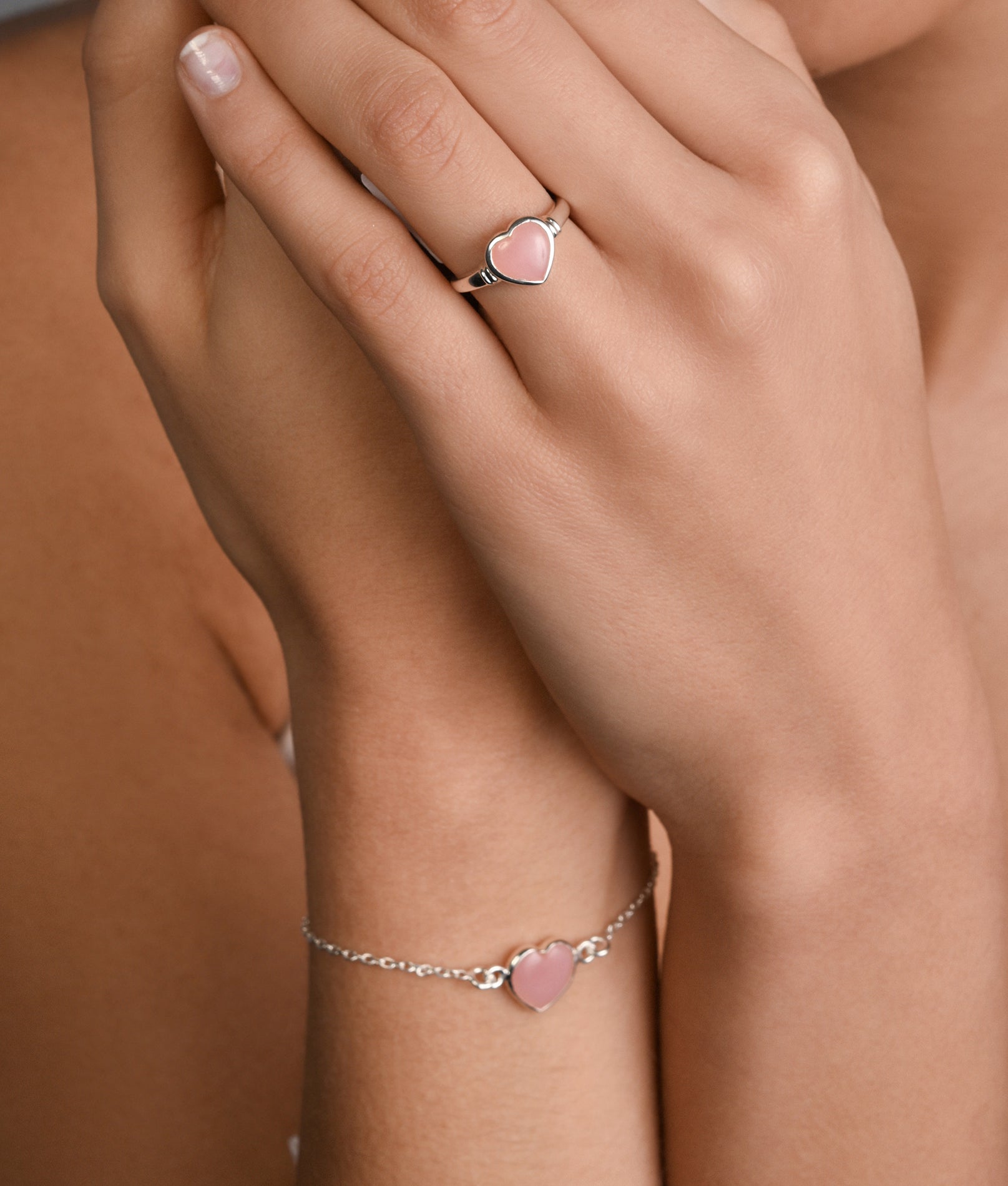 Adjustable Bracelet with Pink Opal Heart