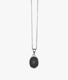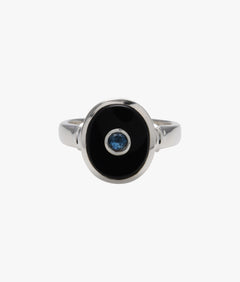 Materials: Sterling silver, natural black onyx, natural blue topaz