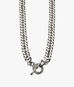 The condensed curb bracelet features tightly connected curb links, creating a sleek & modern look. This pieces is clasped together with a Von Treskow Disc toggle.
