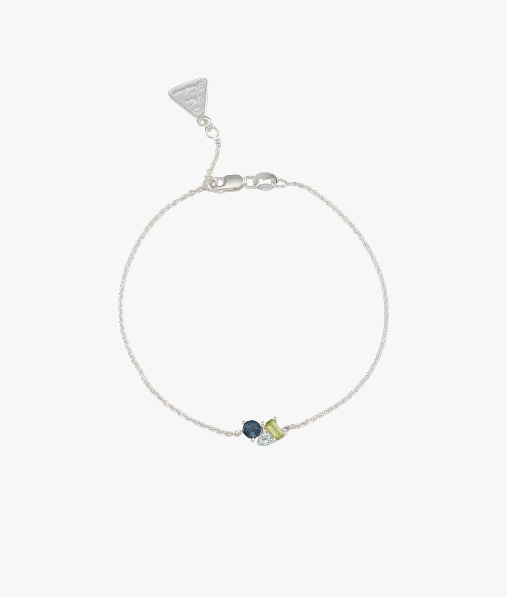 Mixed cuts, fresh hues. From Von Treskow’s Lime & Berry collection, this fine chain bracelet sets a round London Blue Topaz alongside a baguette-cut Peridot and round Sky Blue Topaz. The play of shapes and shades - ocean, lime, and sky - adds a refined twist to everyday colour.