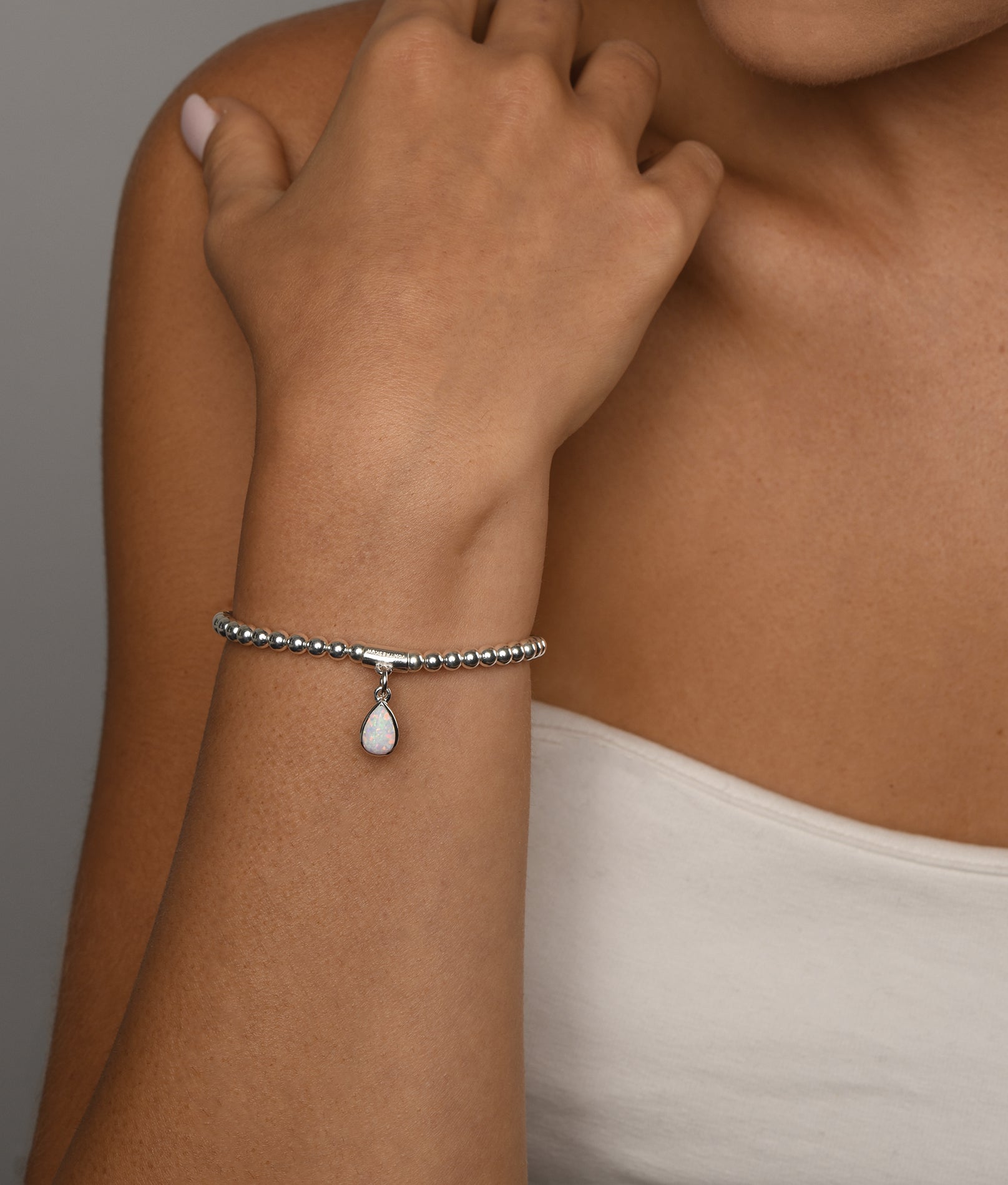 Watch the hues and colours of Czelline Opal change as light flickers off its smooth surface. The stretchy bracelet is perfect for everyday wear. Beads are threaded onto an elastic material, allowing the bracelet to stretch to fit a range of wrist sizes.