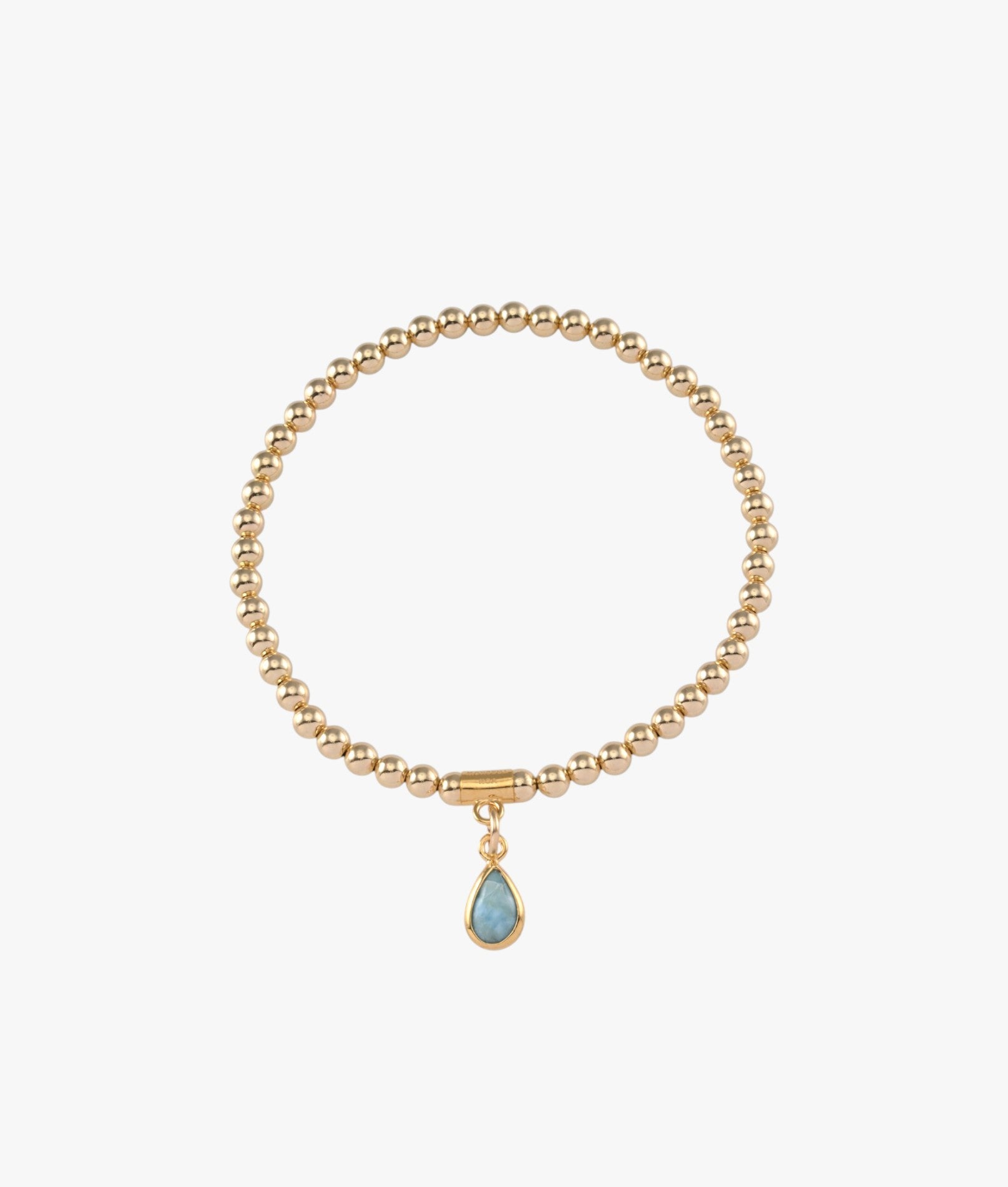 Soft colour, polished contrast. This 4mm beaded bracelet features a small pear-shaped Larimar charm - a stone only formed in Caribbean volcanic rock, known for its serene ocean-blue tones. Designed with stretch for a comfortable, effortless fit.