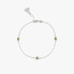 Three stones, endless shine. This fine chain bracelet features three round-cut Peridot gems, bringing a vibrant pop of green to a sterling silver setting. Designed to wear solo or layered into your everyday stack.