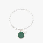This fine clip chain bracelet features a round Malachite charm - a gemstone loved for its deep green tones and natural banding. Refined, versatile, and designed for effortless everyday wear.