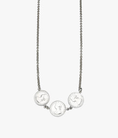 Stretchy bracelet with triple mini coin. Beads are threaded onto an elastic material, allowing the bracelet to stretch to fit a range of wrist sizes.