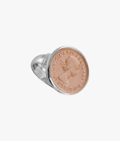From Von Treskow's signature coin collections, the silver mesh chain provides a sharp contrast against the smooth surfaced rose gold beads. In this piece a authentic Australian sixpence coin is encased in rose gold plate. Beads & mesh are threaded onto an elastic material, allowing the bracelet to stretch to fit a range of wrist sizes.