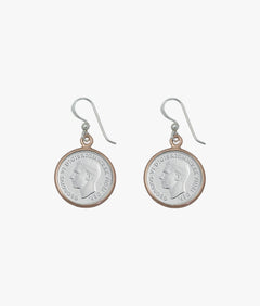 Silver & rose gold are intertwined to create a head-turning two tone look. This bracelet includes an authentic Australian sixpence coin encased in sterling silver and secured within a rose gold plated frame. Beads are threaded onto an elastic material, allowing the bracelet to stretch to fit a range of wrist sizes.