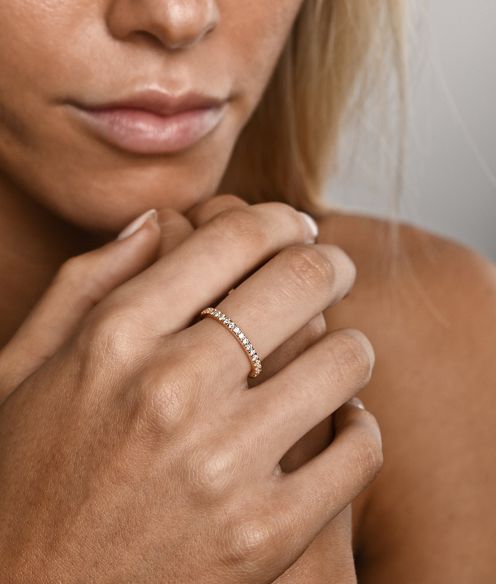 A delicate take on a classic, this full diamond eternity ring features 1.25mm round brilliant-cut diamonds in an elegant claw setting. Perfect as a wedding band, anniversary ring, or a fine stacking piece, it delivers understated sparkle for every occasion.