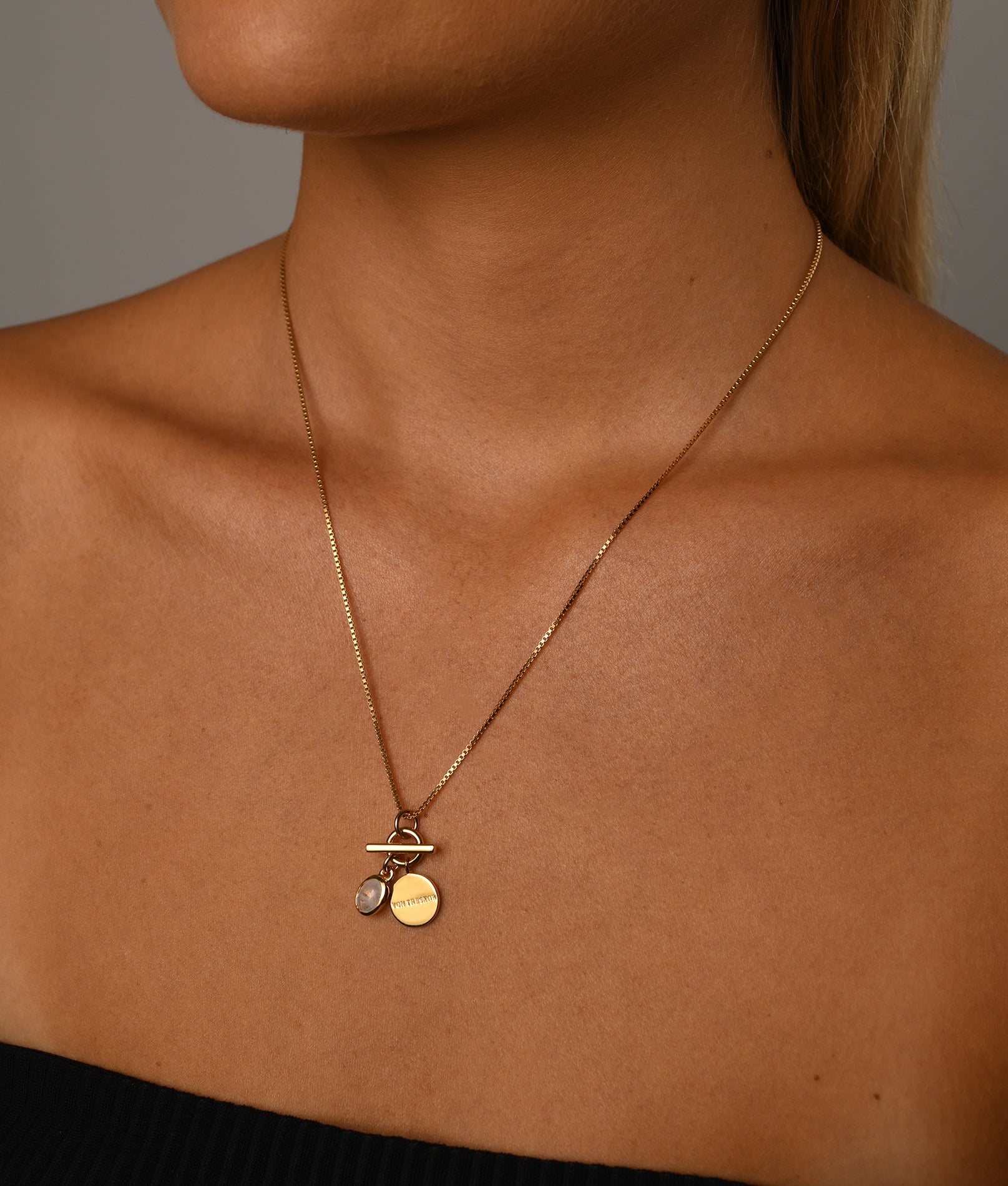 Box chain necklace with toggle and moonstone