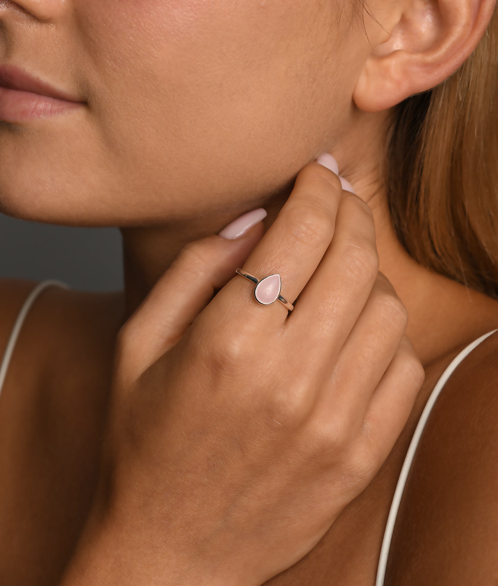 Pear Shape Rose Quartz Ring