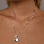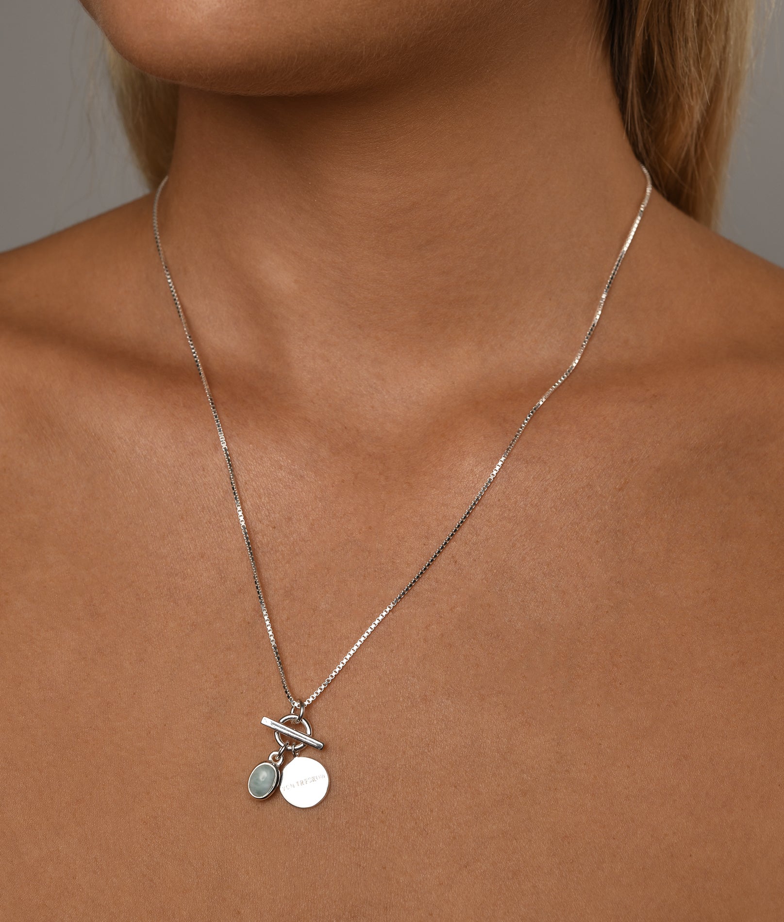 Fine box chain necklace with oval larimar and Von Treskow Disc toggle.