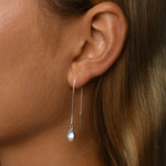Silver thread chain earrings with oval moonstone. Moonstone appears to glow internally through its silvery white-surface. The luminous bluish/purple hues change as you view from different angles. With a celestial feel, moonstone is said to be tied to the moon, providing a cylclical calmness & balance to your emotions & behaviours. Each Von Treskow moonstone is natural & formed by nature, featuring visible, unique inclusions inside each stone.