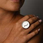 From Von Treskow's iconic coin collections, the authentic Australian shilling coin ring. This piece includes a real Australian shilling coin encased within sterling silver and set into its band.
