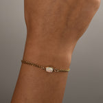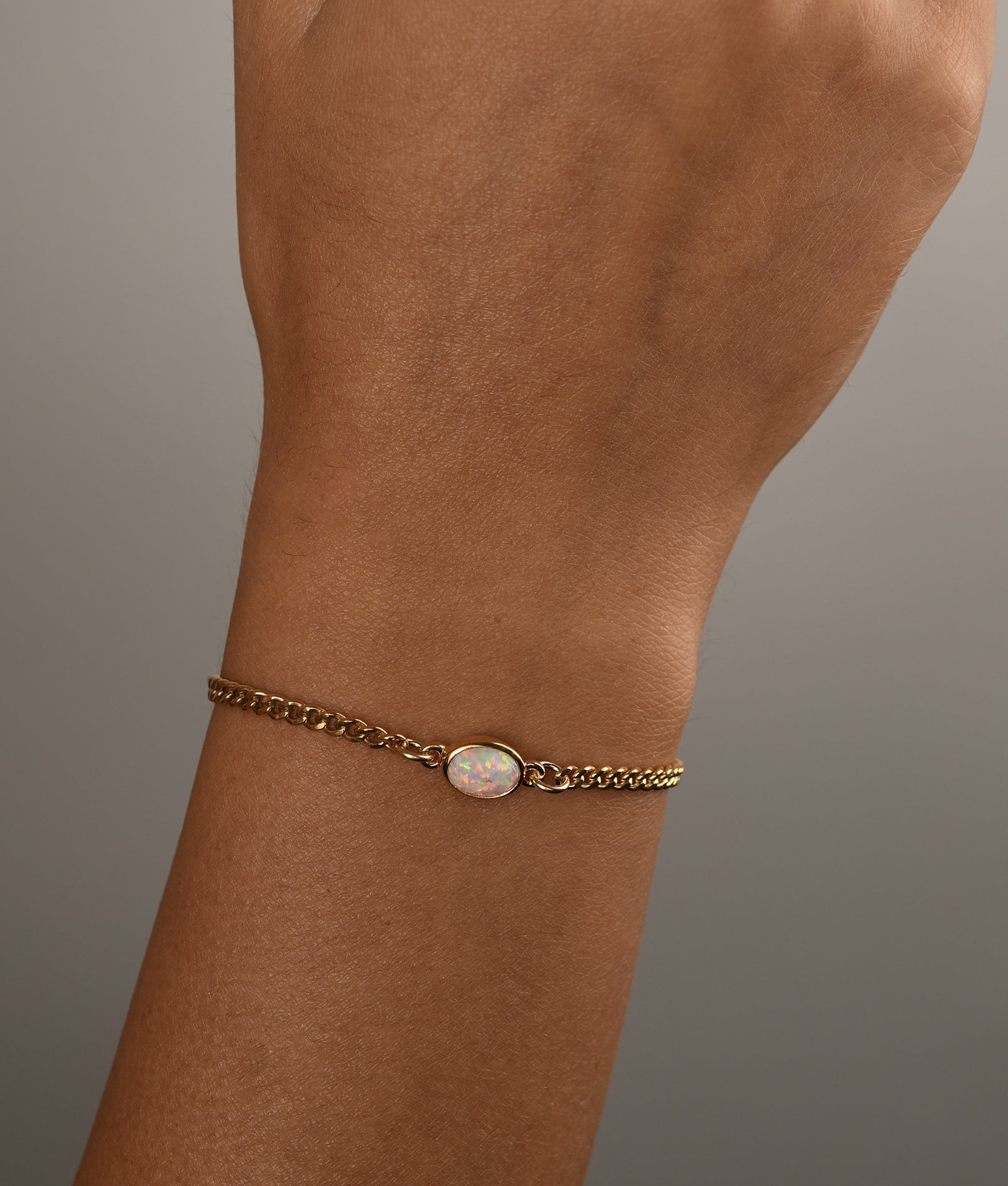 Fine curb chain bracelet with oval Czelline Opal. Watch the hues and colours of Czelline Opal change as light flickers off its smooth surface.