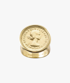 This piece features a real Australian sixpence coin encased within a gold plated 'compass frame', with detail pointing to North, South, East & West. Beads are threaded onto an elastic material, allowing the bracelet to stretch to fit a range of wrist sizes.