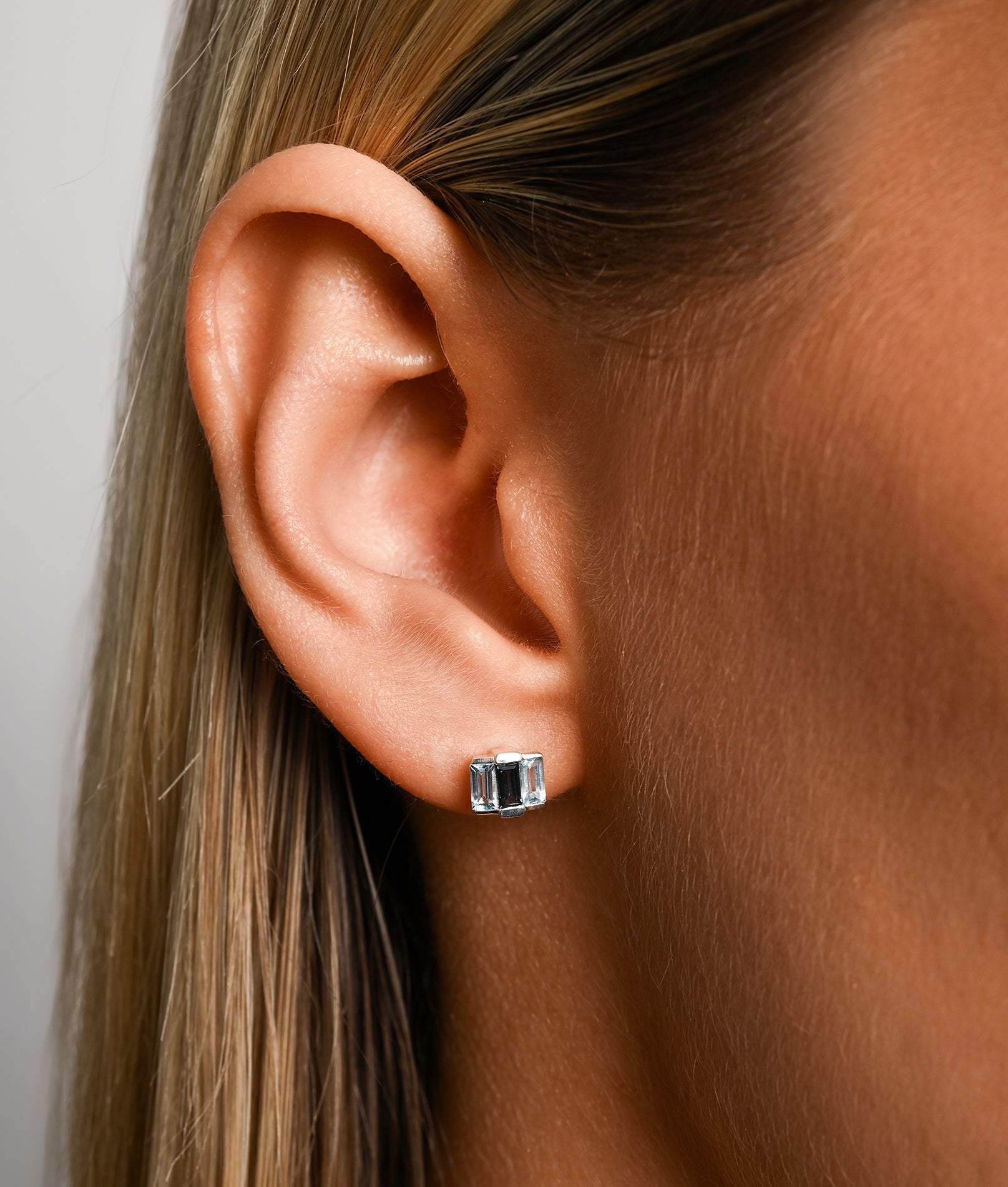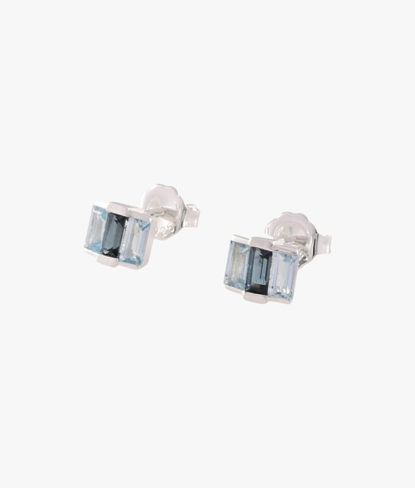 From Von Treskow’s Lime & Berry collection, these sterling silver stud earrings feature baguette-cut Sky Blue Topaz and London Blue Topaz. The pairing of light and deep blue tones creates a balanced contrast, offering a modern, versatile option for everyday wear.