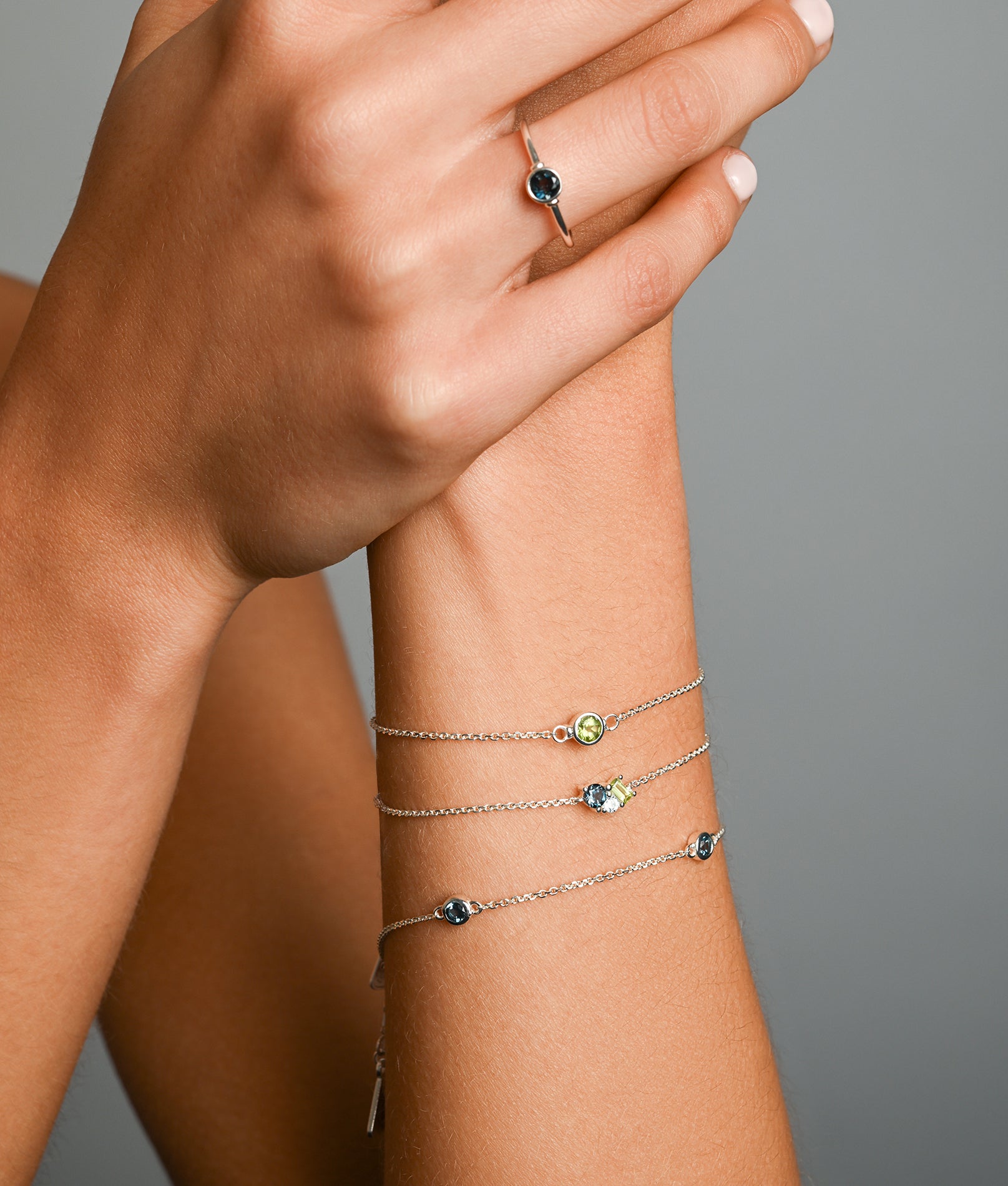 Fresh and vibrant. This fine chain bracelet is set with a round-cut Peridot, its green tones adding a lively pop of colour to a delicate sterling silver chain. An easy choice for everyday wear or layered styling.