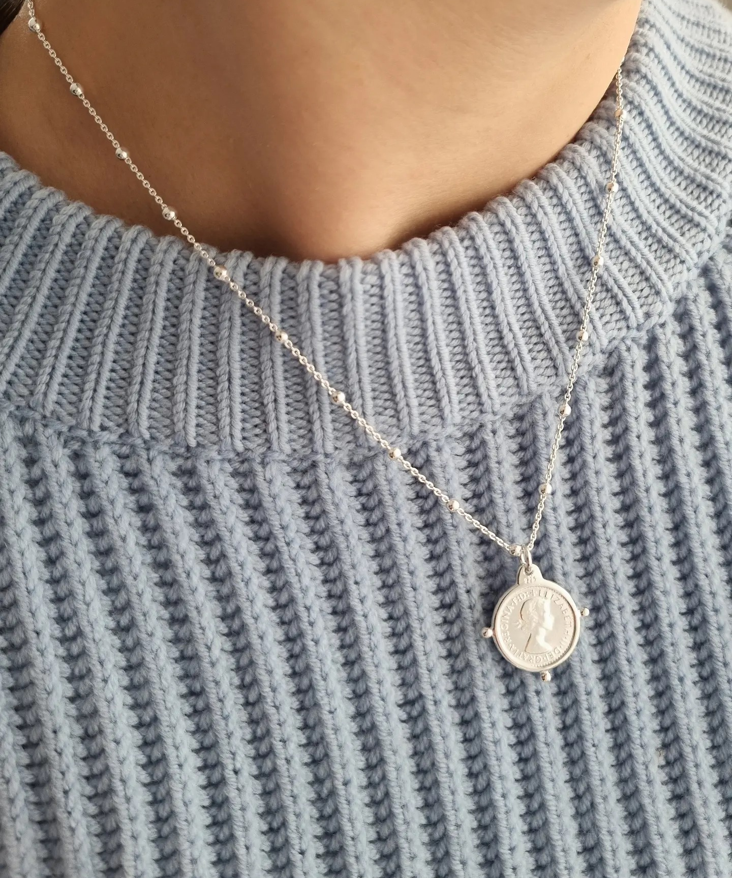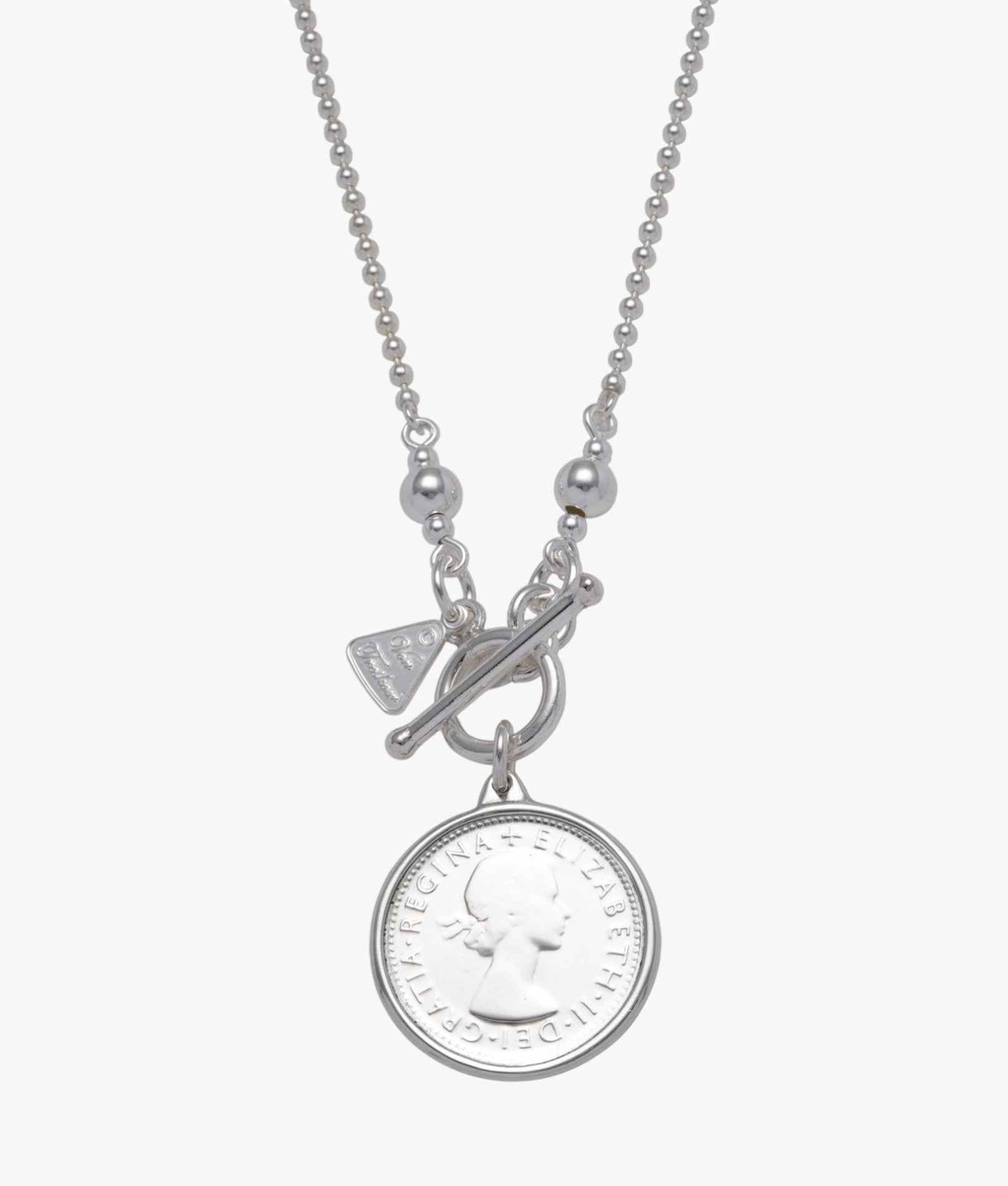 Fine ball chain necklace with threepence