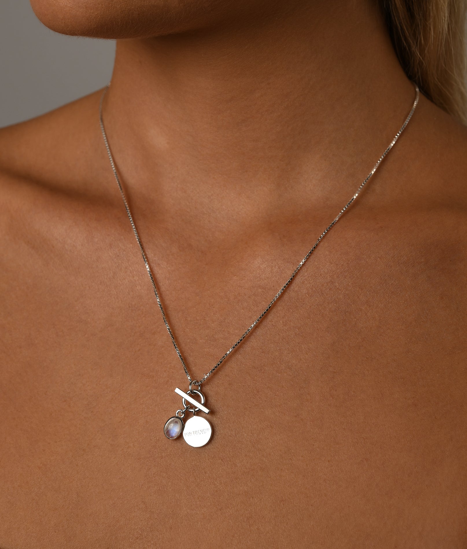 Box chain necklace with toggle and moonstone