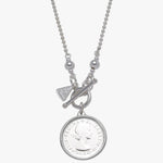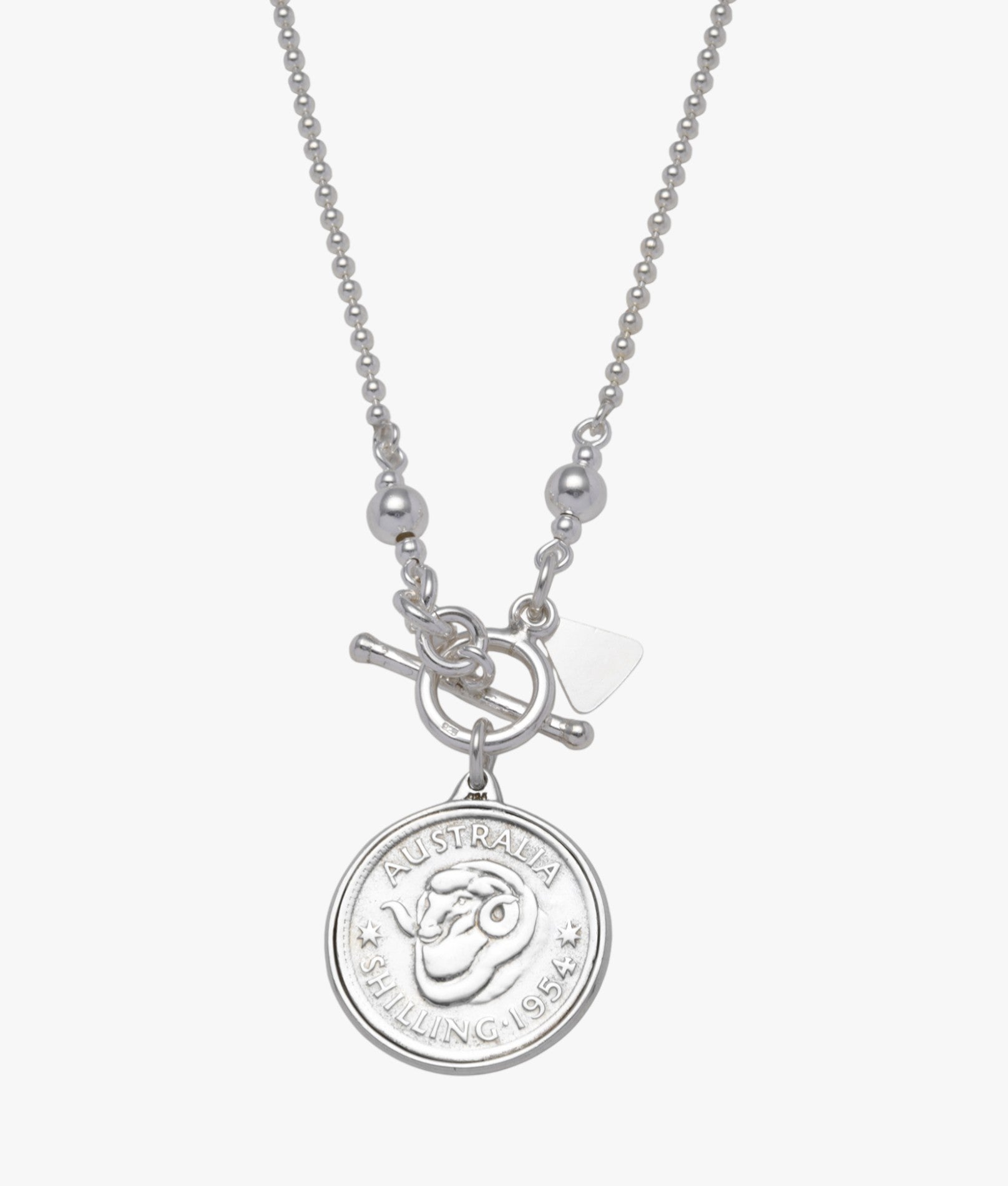 From Von Treskow's iconic coin collections, this shorter necklace captures an elegant feel. An authentic Australian shilling coin is suspended from a silver ball chain.