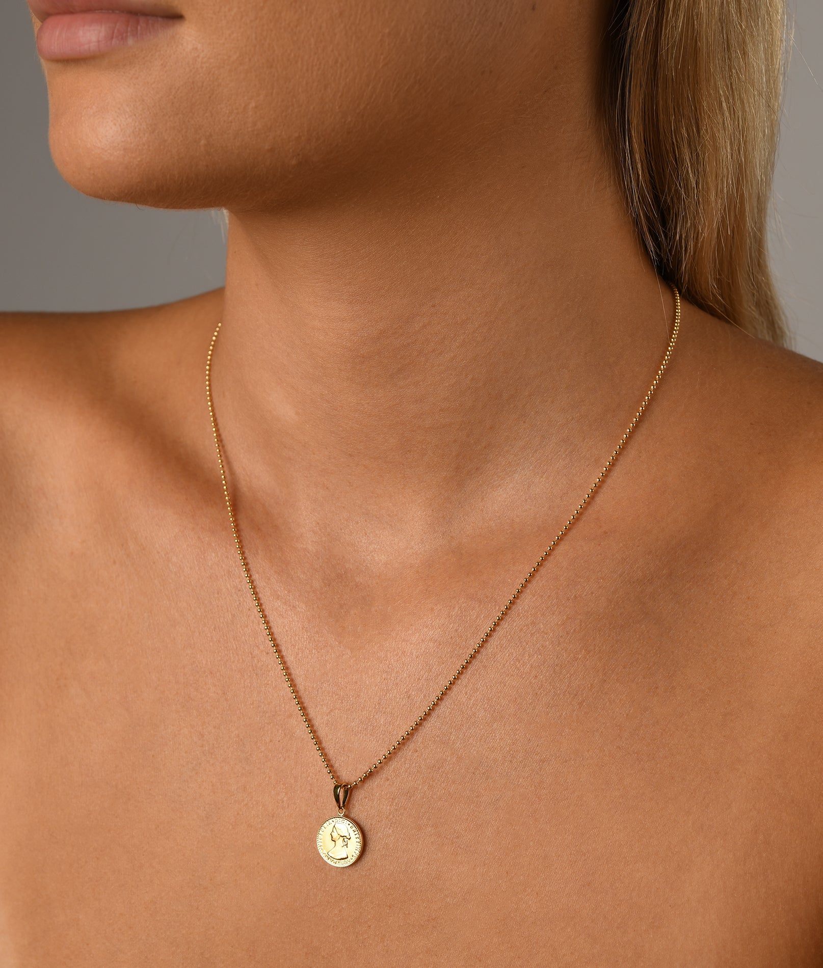 Fine ball chain necklace with mini coin