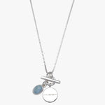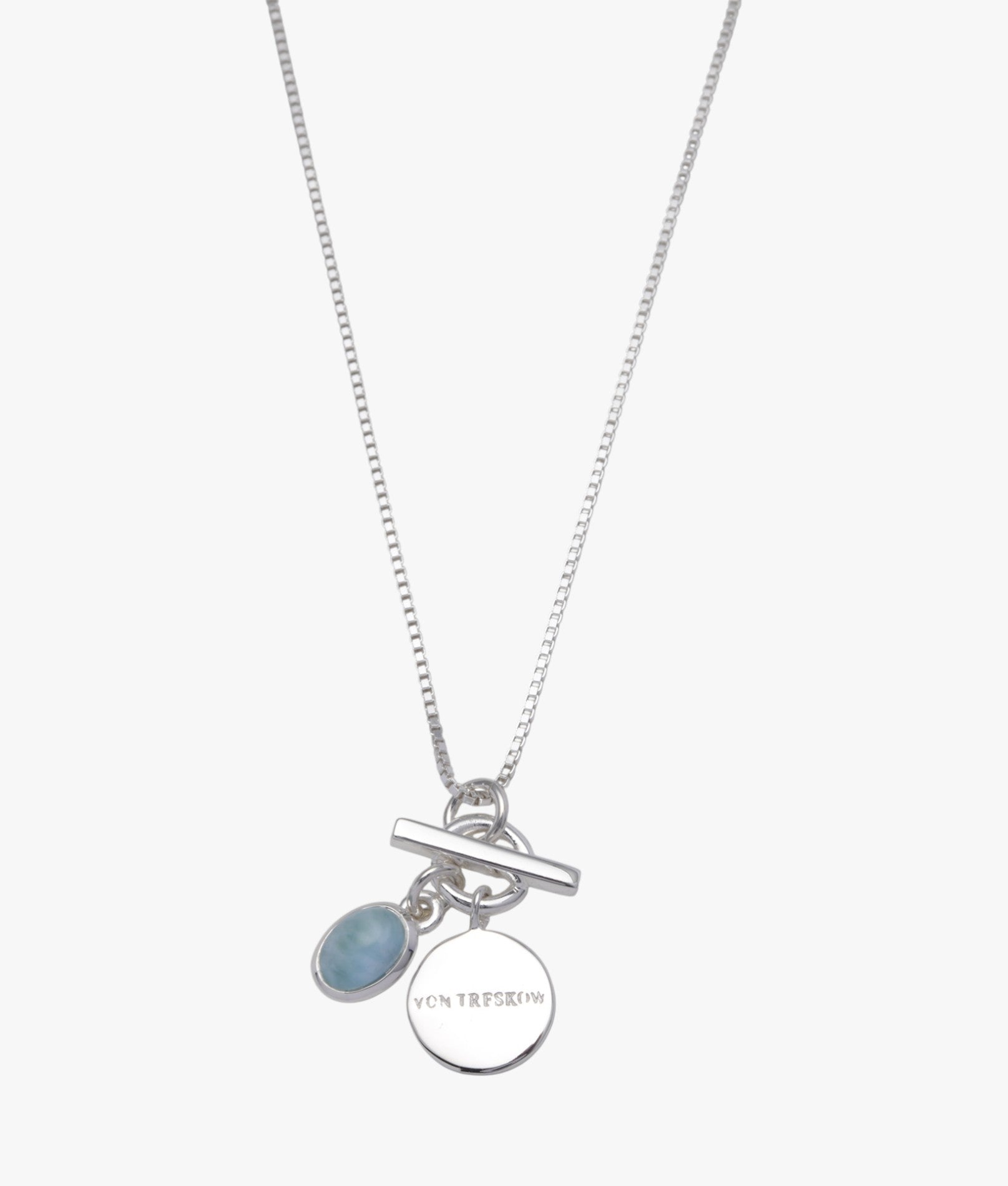 Fine box chain necklace with oval larimar and Von Treskow Disc toggle.
