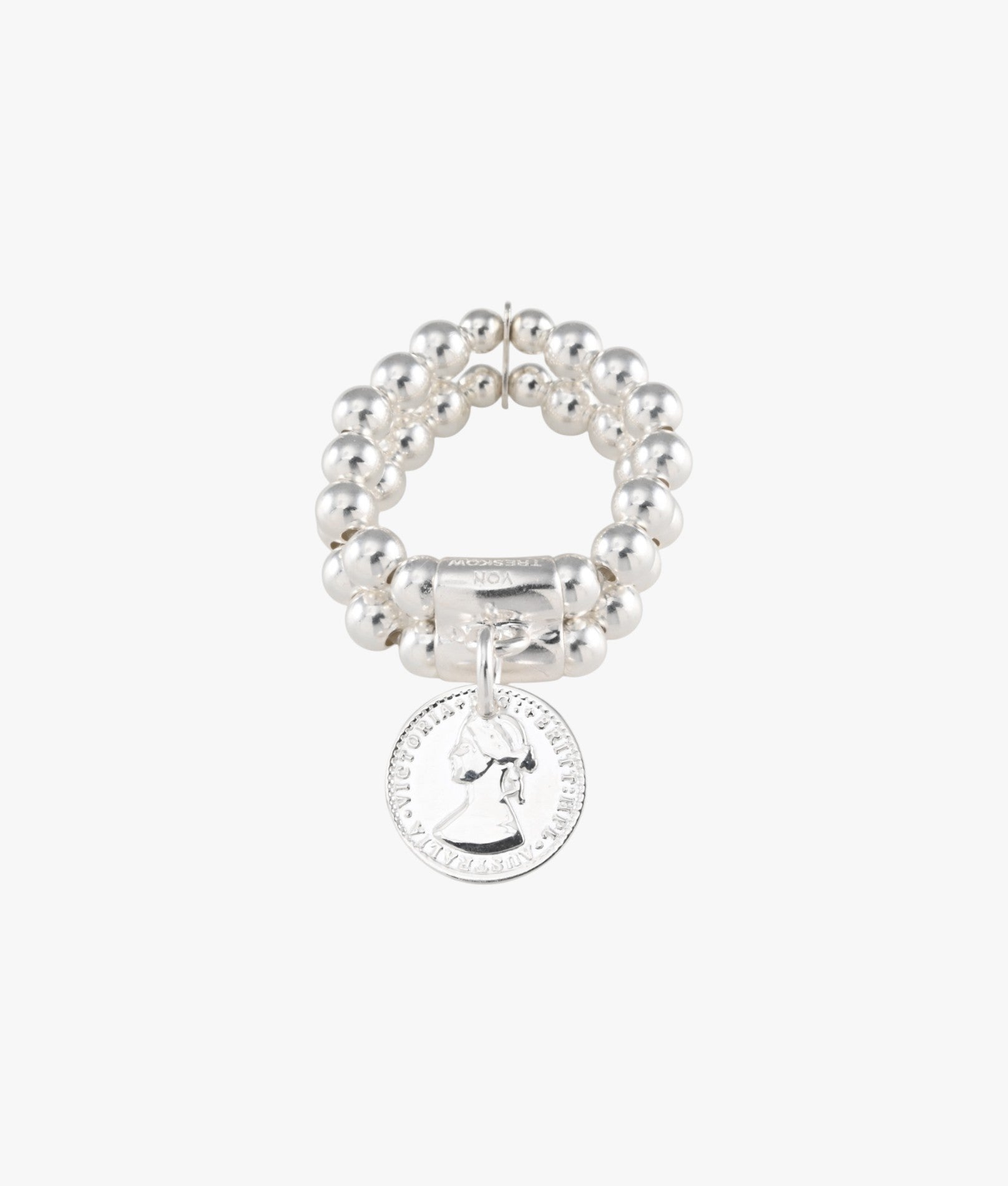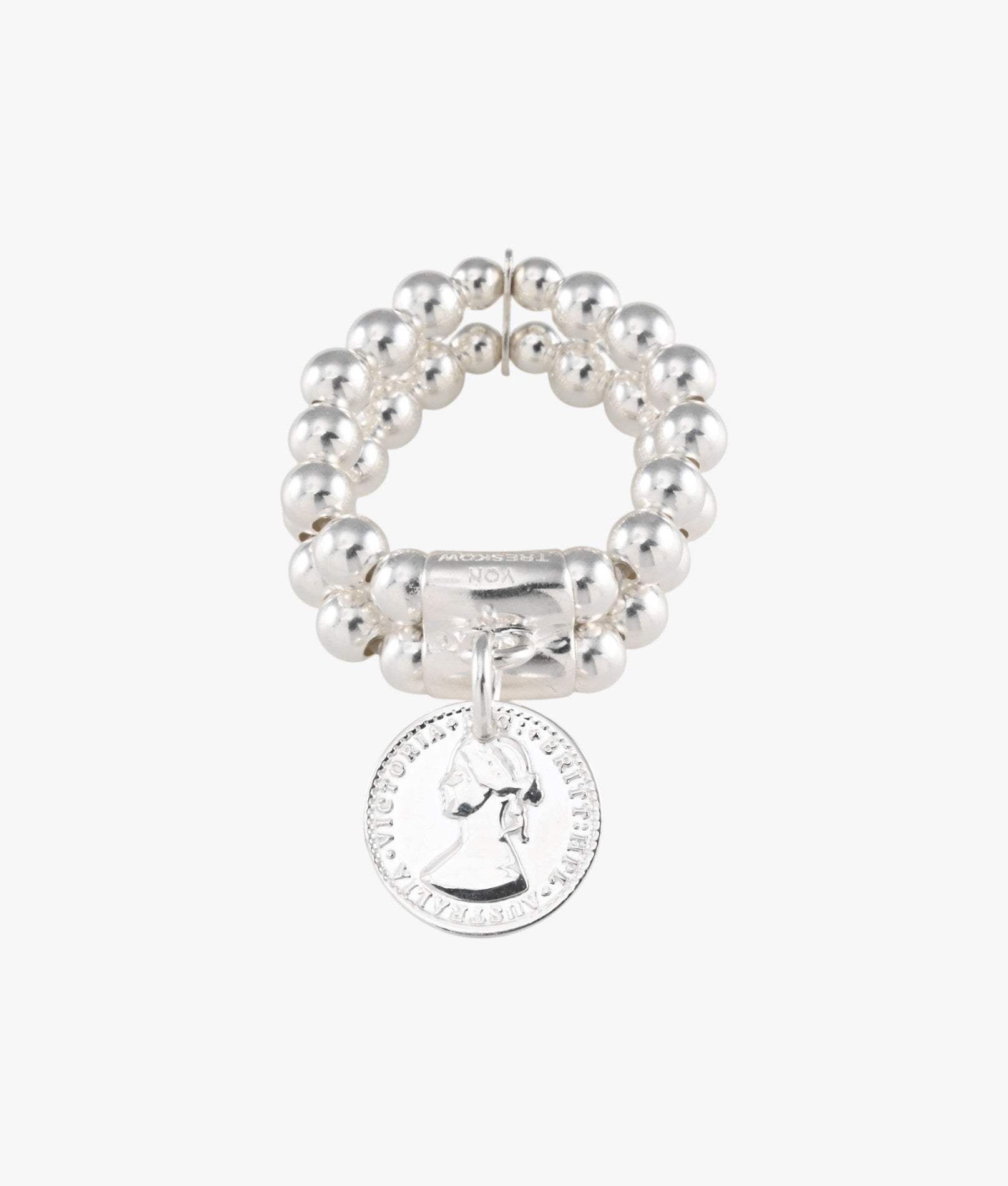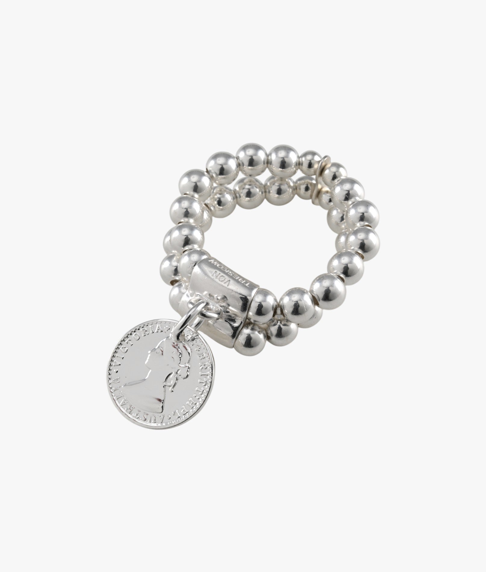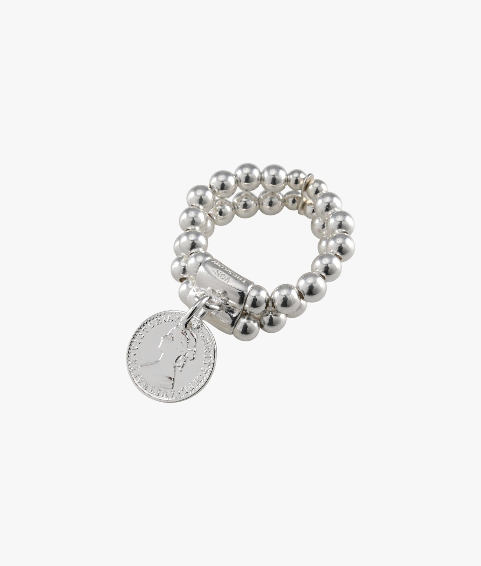 Sterling silver two-strand stretchy ring with mini Australian token coin.