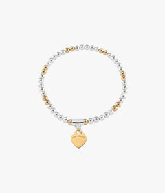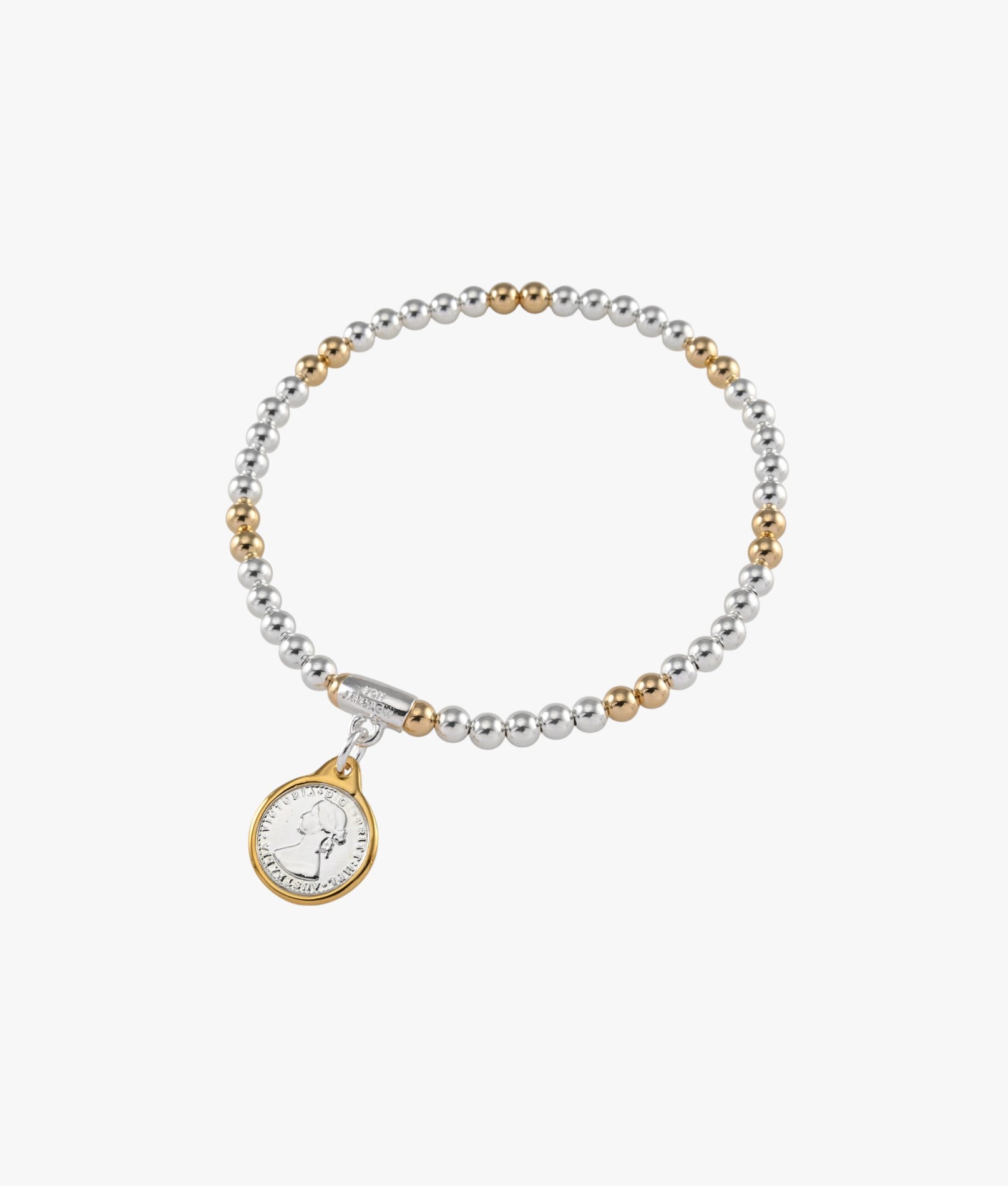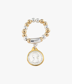 Understated, collectible, made to stack. A yellow gold and silver token coin on an elasticised band designed for easy wear and gifting.