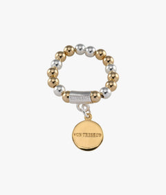 Polished, precise, and made to stack. The engraved Von Treskow plate in yellow gold on an elasticised sterling silver band.