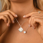 Adjustable box chain necklace with Von Treskow flip plate pendant. Flip the centre plate to choose between two different text styles. This necklace features Von Treskow's adjustable clasp allowing you to choose the desire length of your chain.