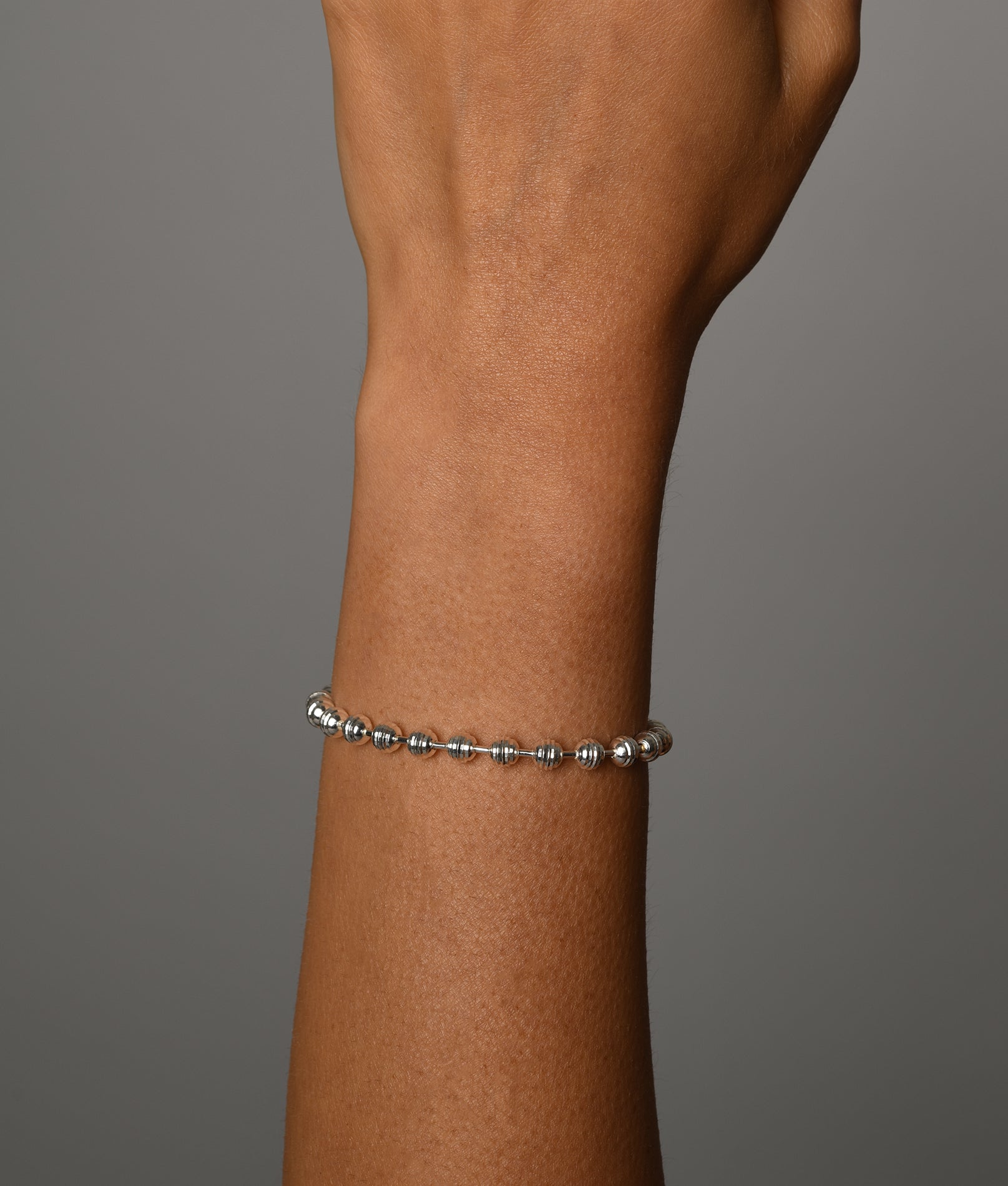 Adjustable corrugated ball bracelet. The 'adjustable' clasp allows you to increase or decrease the size of the bracelet, enabling it to fit a great range of wrist sizes.