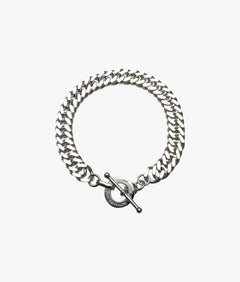Sterling silver condensed curb link chain necklace with Von Treskow disc and t-bar.