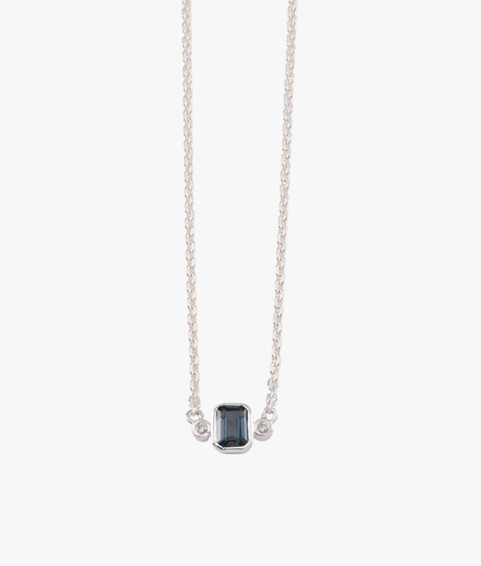Sleek angles, ocean tones. From Von Treskow’s Lime & Berry collection, this fine chain necklace features a tapered emerald-cut London Blue Topaz pendant accented with subtle sparkle. The geometric cut adds a modern edge, while the deep blue hue keeps the look timeless and refined.